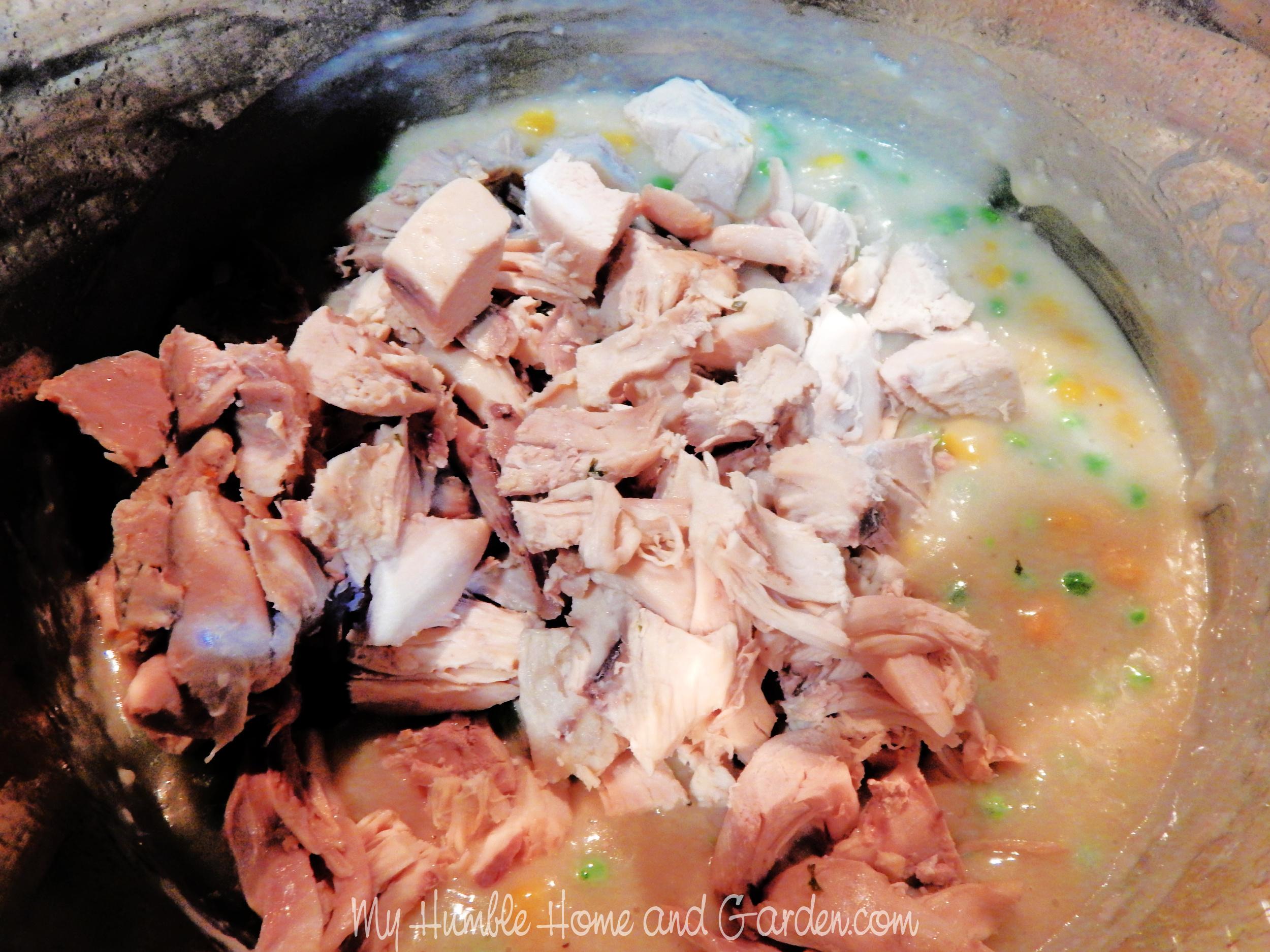 Add the chicken Posted on 2022-01-182022-01-18Full size 2500 × 1875 Add the chicken. How To Make The Best Homemade Chicken Pot Pie – Add the chicken. #chickenpotpie #onedishmeal