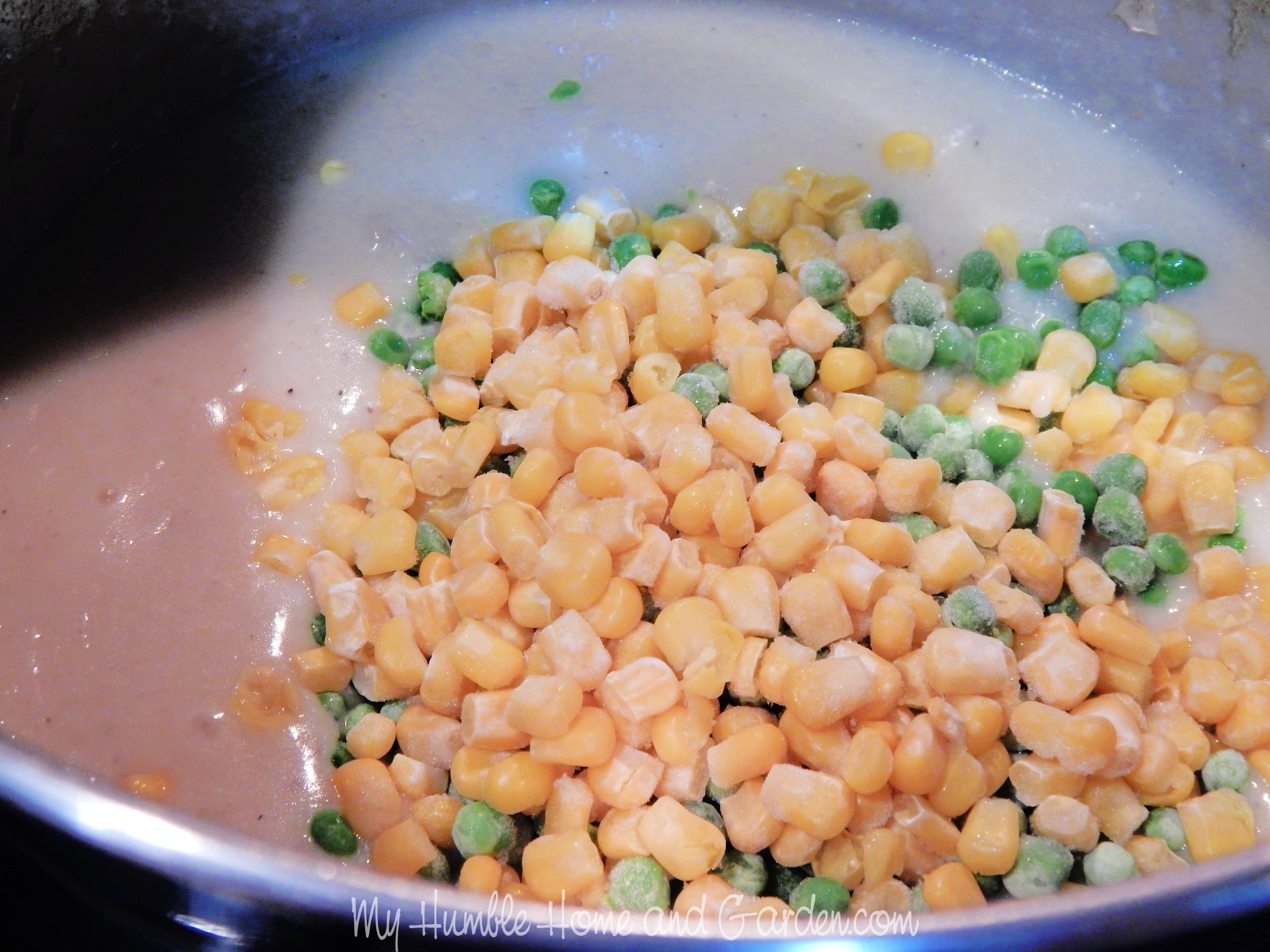 Add the frozen corn and peas. Posted on 2022-01-182022-01-18Full size 2500 × 1875 Add the frozen corn and peas. How To Make The Best Homemade Chicken Pot Pie – Add the frozen corn and peas. #chickenpotpie #onedishmeals
