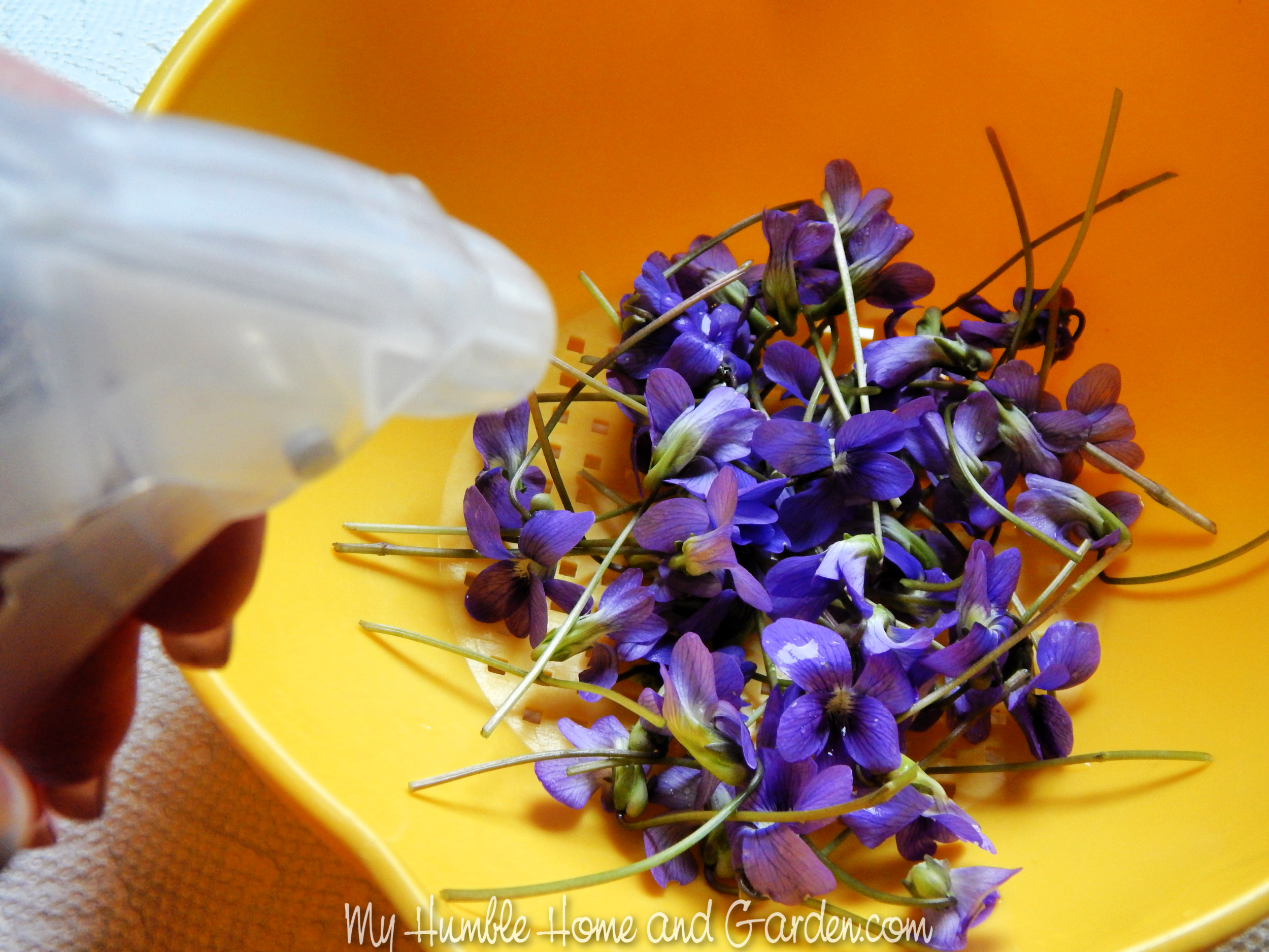 How To Make Lovely, Delicate Candy Violet Decorations – Spray water onto the flowers. #violets #sugaredviolets #candiedviolets
