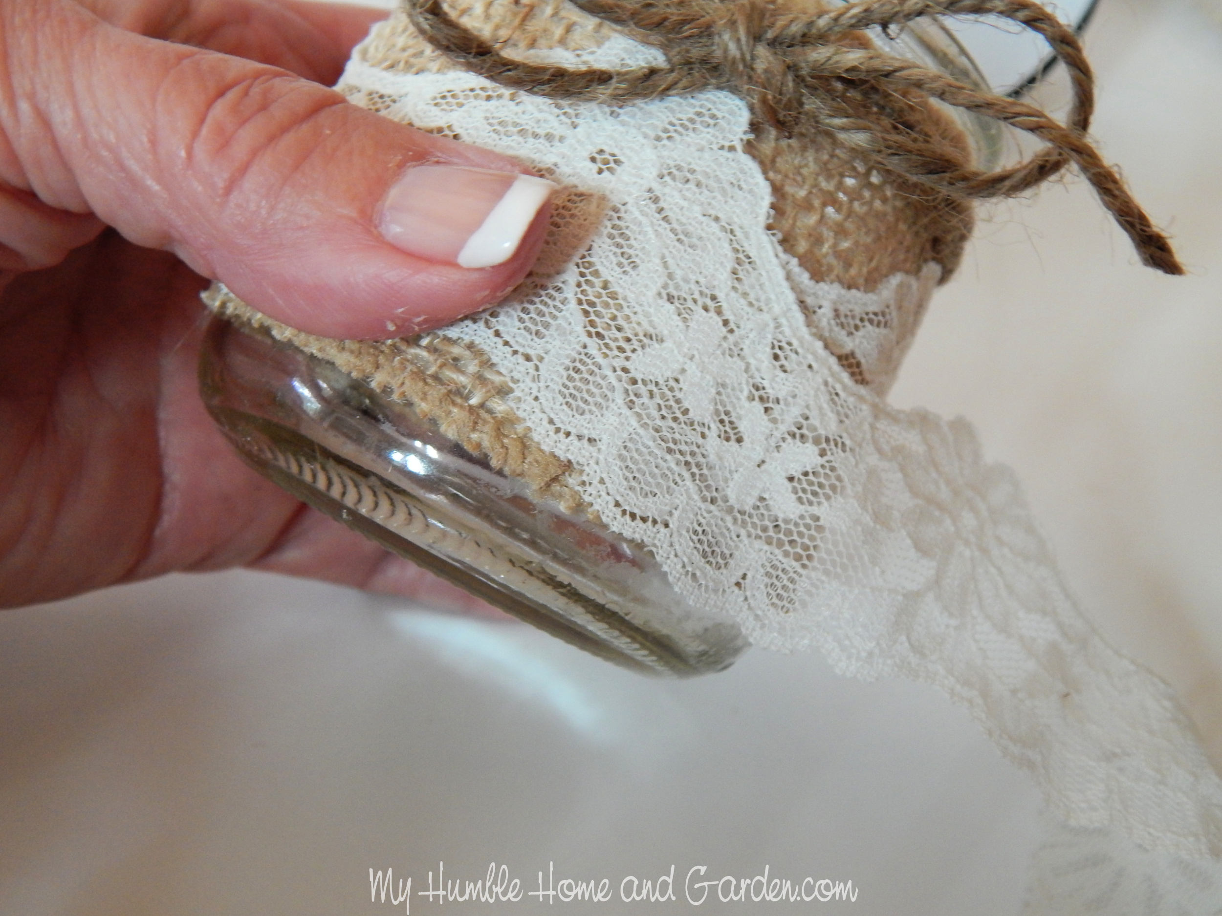 Glue lace around the jar Posted on 2021-07-122021-07-12Full size 2500 × 1875 Glue lace around the jar Shabby Chic Burlap Trim Yogurt Jars Easy DIY – Shabby Chic Burlap Trim Glass Jars #shabbychic #farmhousedecor