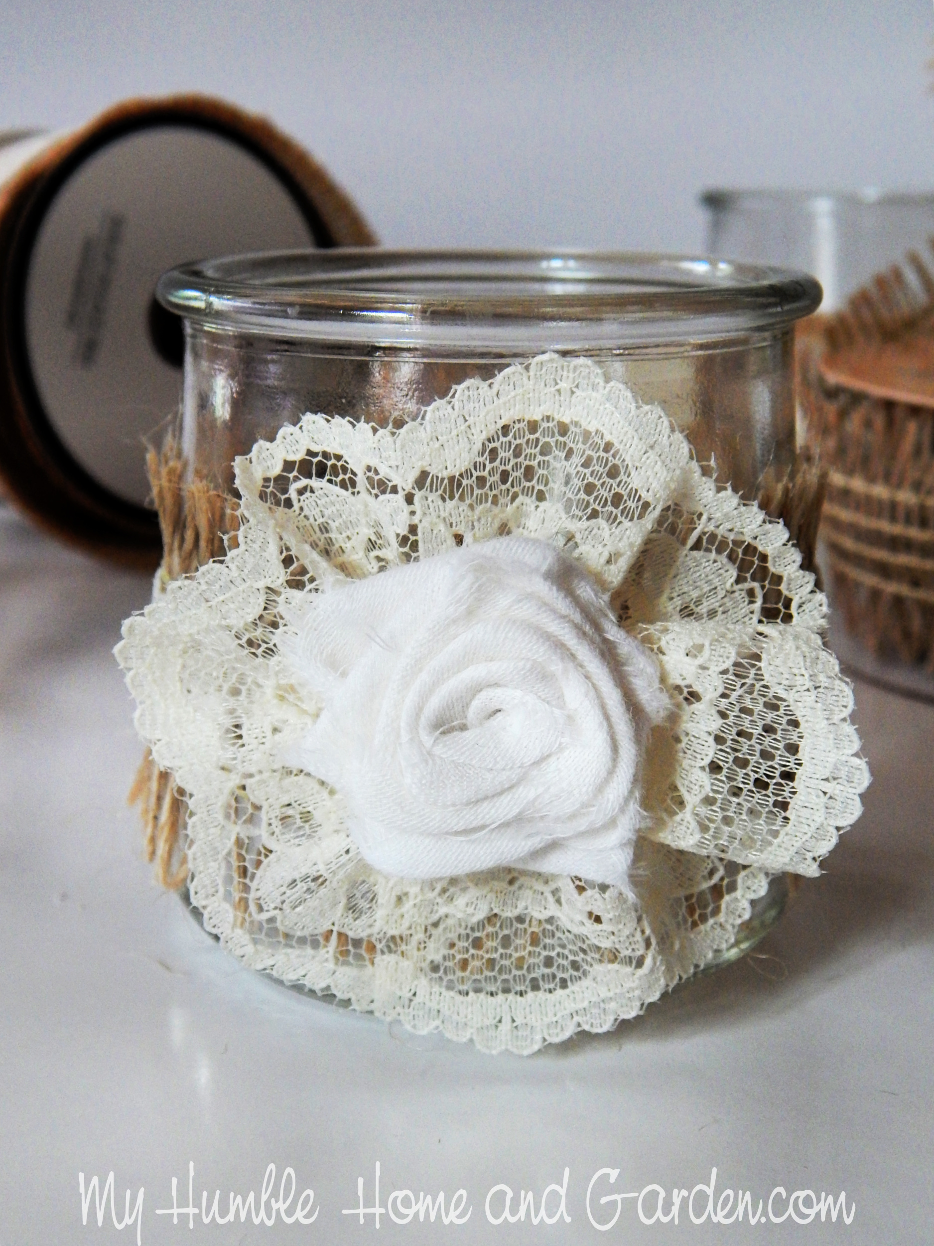 Glue the fabric rose on top of the lace rosette Posted on 2021-07-112021-07-11Full size 1875 × 2500 Glue the fabric rose on top of the lace rosette Shabby Chic Burlap Trim Yogurt Jars Easy DIY – Glue the fabric rose on top of the lace rosette. #burlap #shabbychic