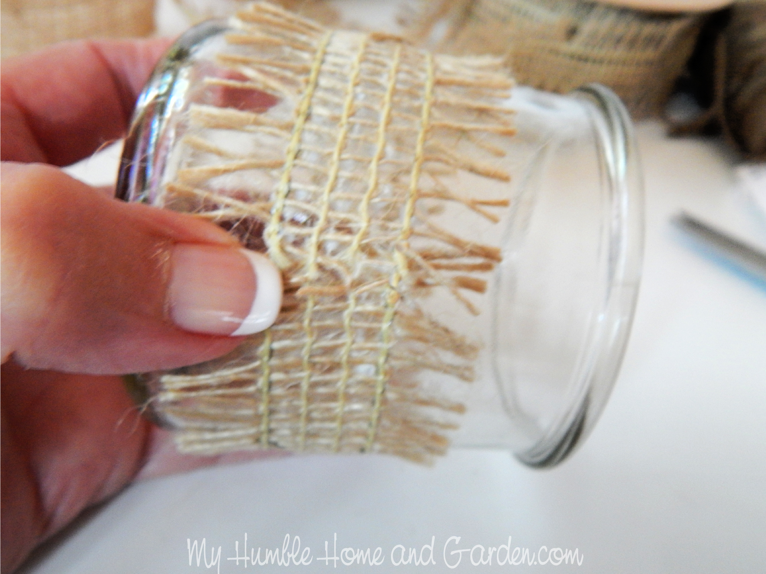 Match up and glue the loose end. Posted on 2021-07-112021-07-11Full size 2500 × 1875 Match up and glue the loose end. Shabby Chic Burlap Trim Yogurt Jars Easy DIY – Match up and glue the loose end. #shabbychic #burlap