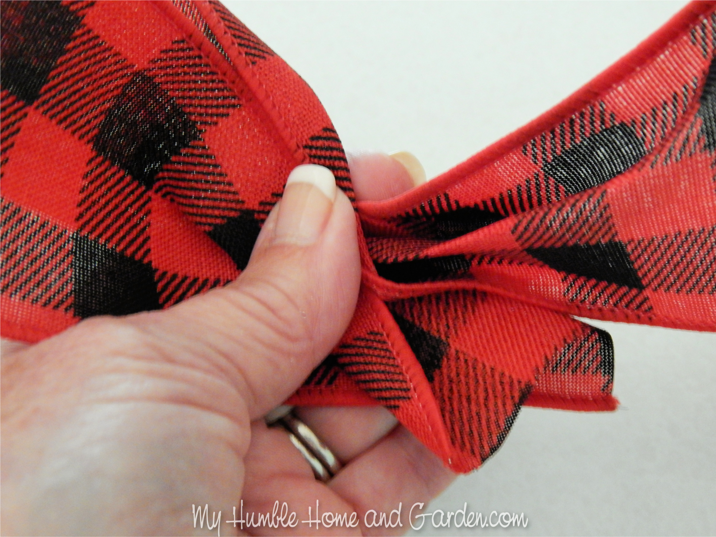 Then, wire the red and black buffalo check ribbon bow to the wreath.