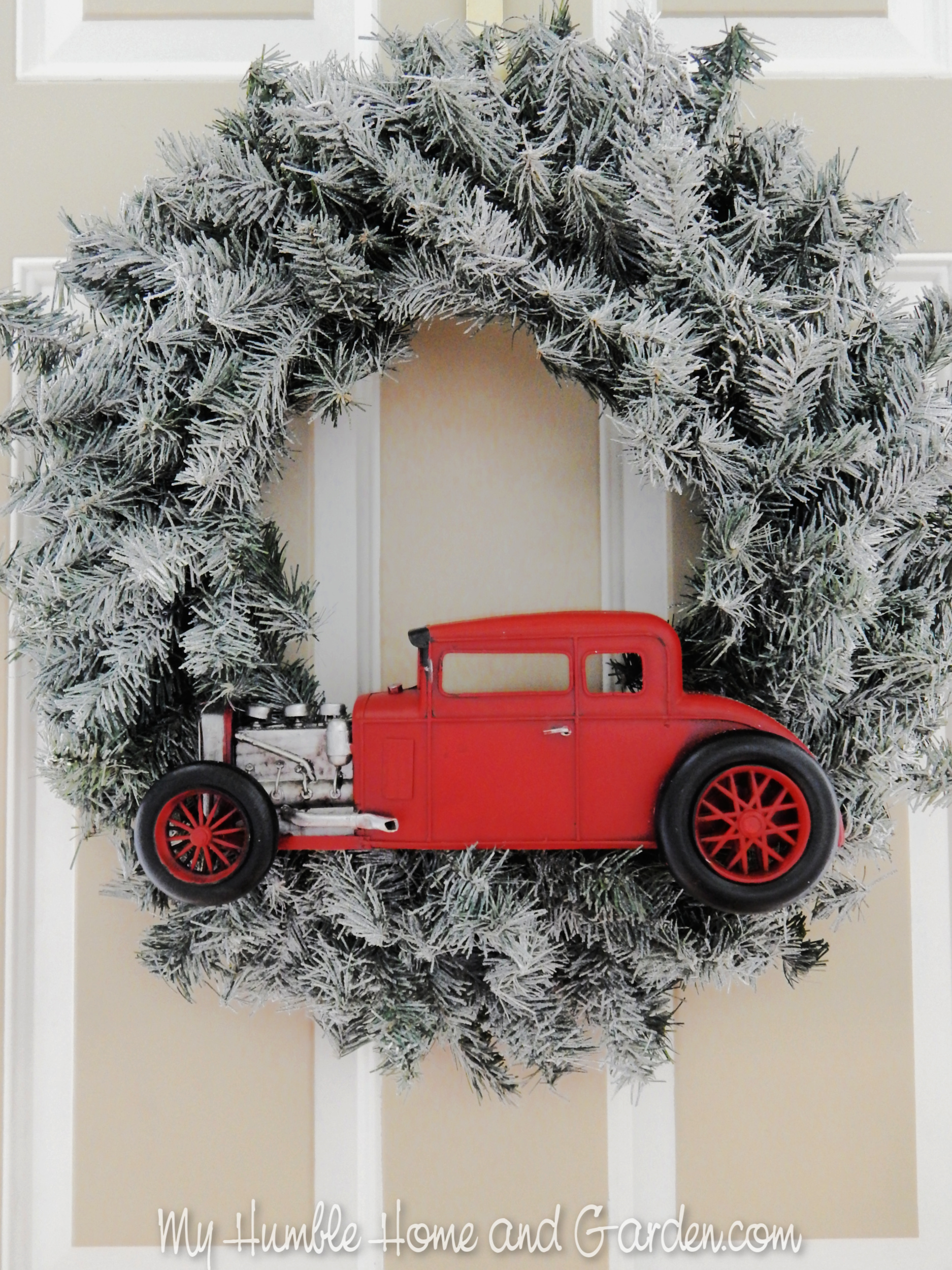 I actually wire the car to the wreath as it hung on this wreath hanger. I love it already!