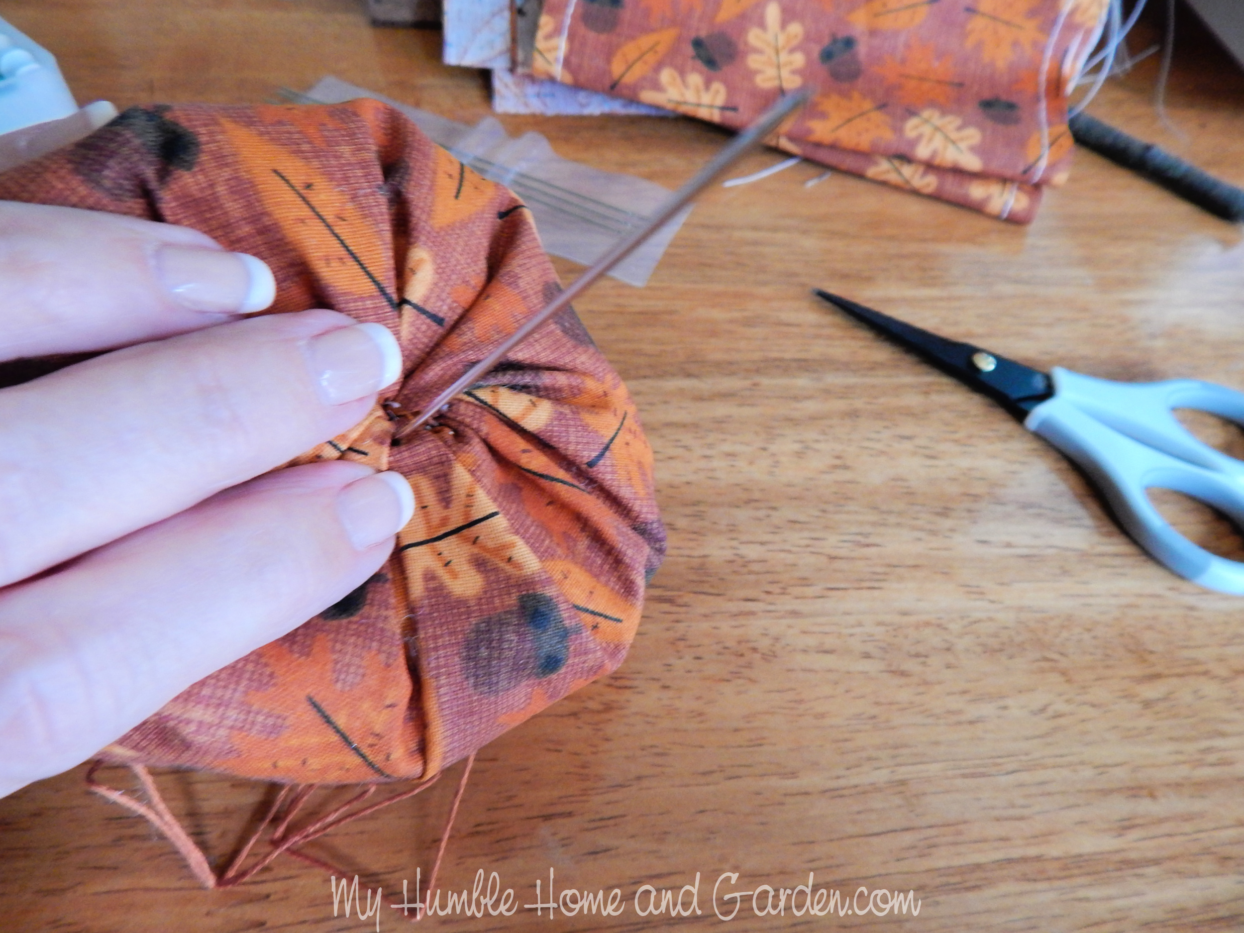 Pull the needle through the center bottom. Posted on 2021-09-012021-09-01Full size 2500 × 1875 Pull the needle thru the center bottom. How To Easily Make Cute Little Fabric Pumpkins – Pull the needle through the bottom. #fabricpumpkins #pumpkins