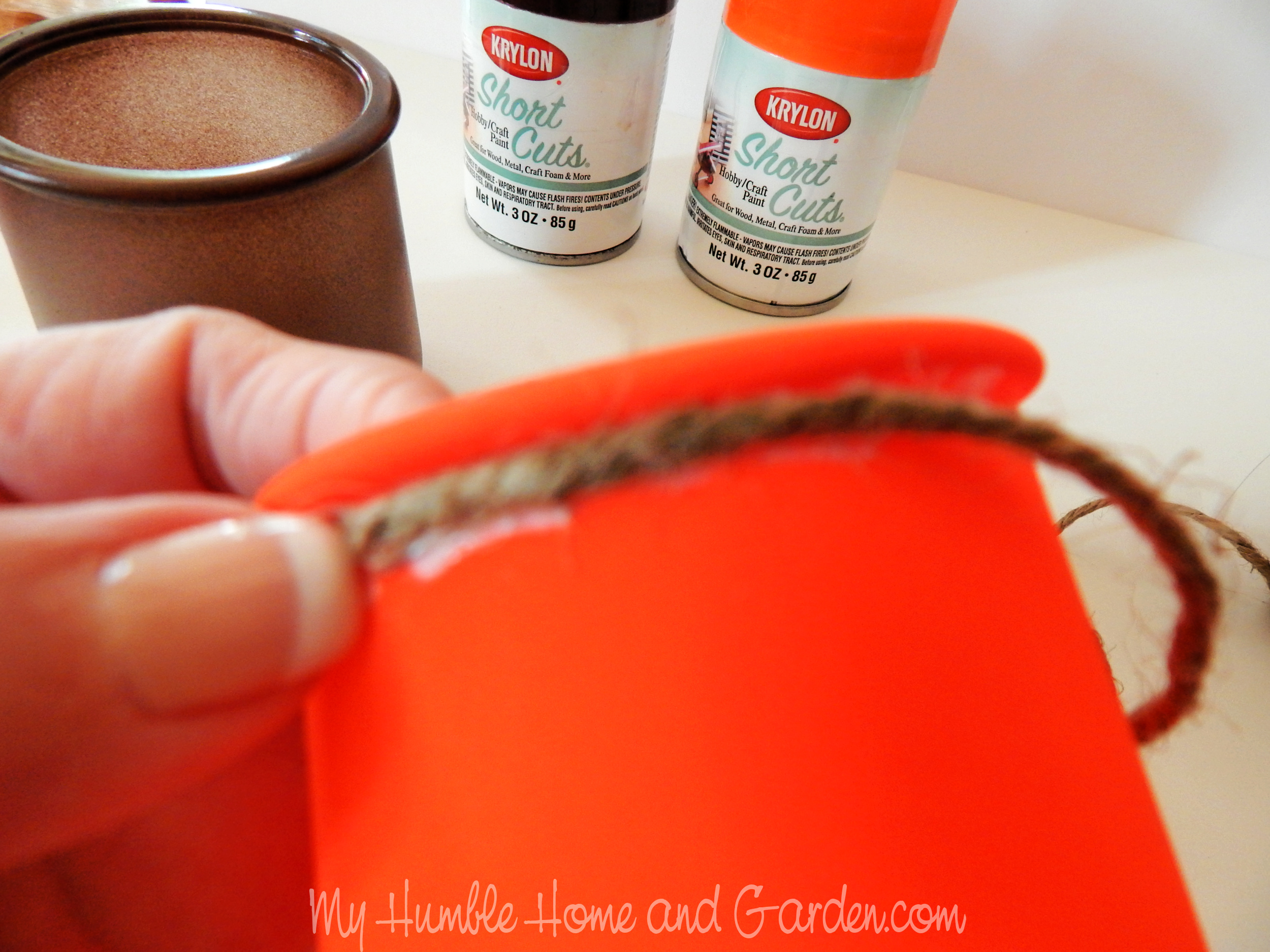 Next, I needed paint colors for fall. Have you seen these Krylon Short Cuts Spray Paints? I don’t know who thought up the idea for these, but it is brilliant! Along with several other colors, Michael’s has the paints in Espresso and Bright Orange. Apparently, other stores around have them, too.