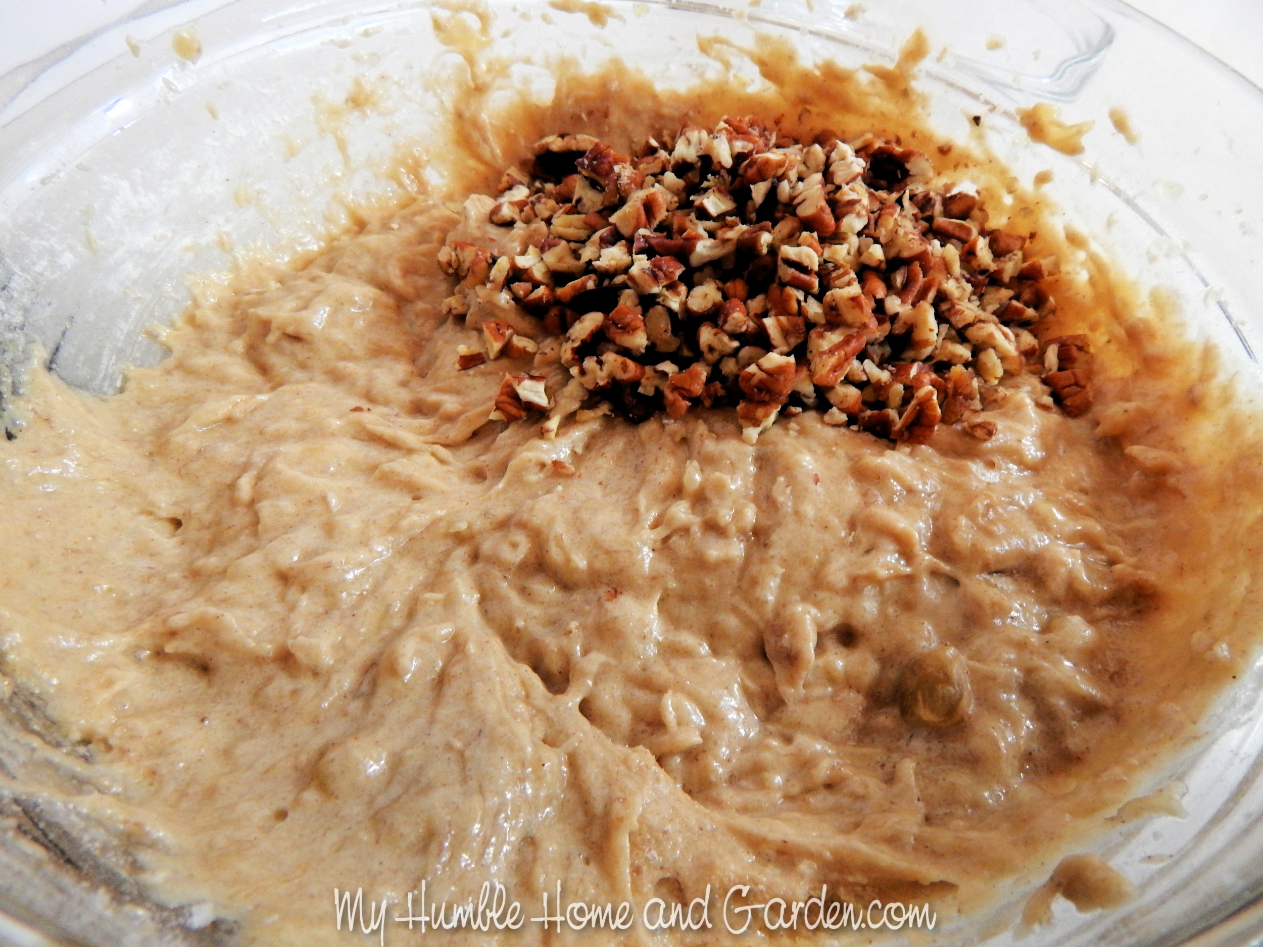 Then, add the nuts. Use a spatula to fold in the nuts.