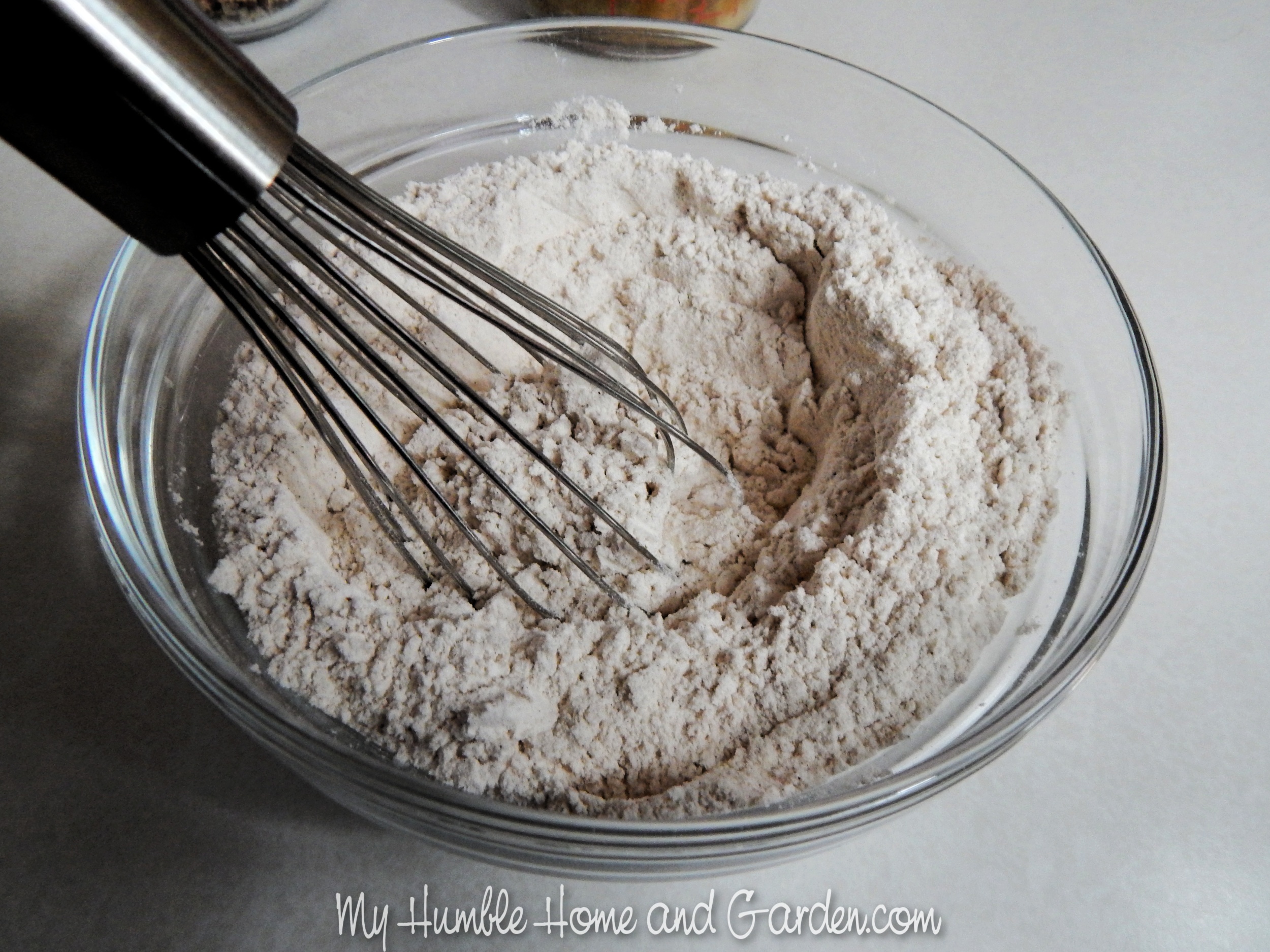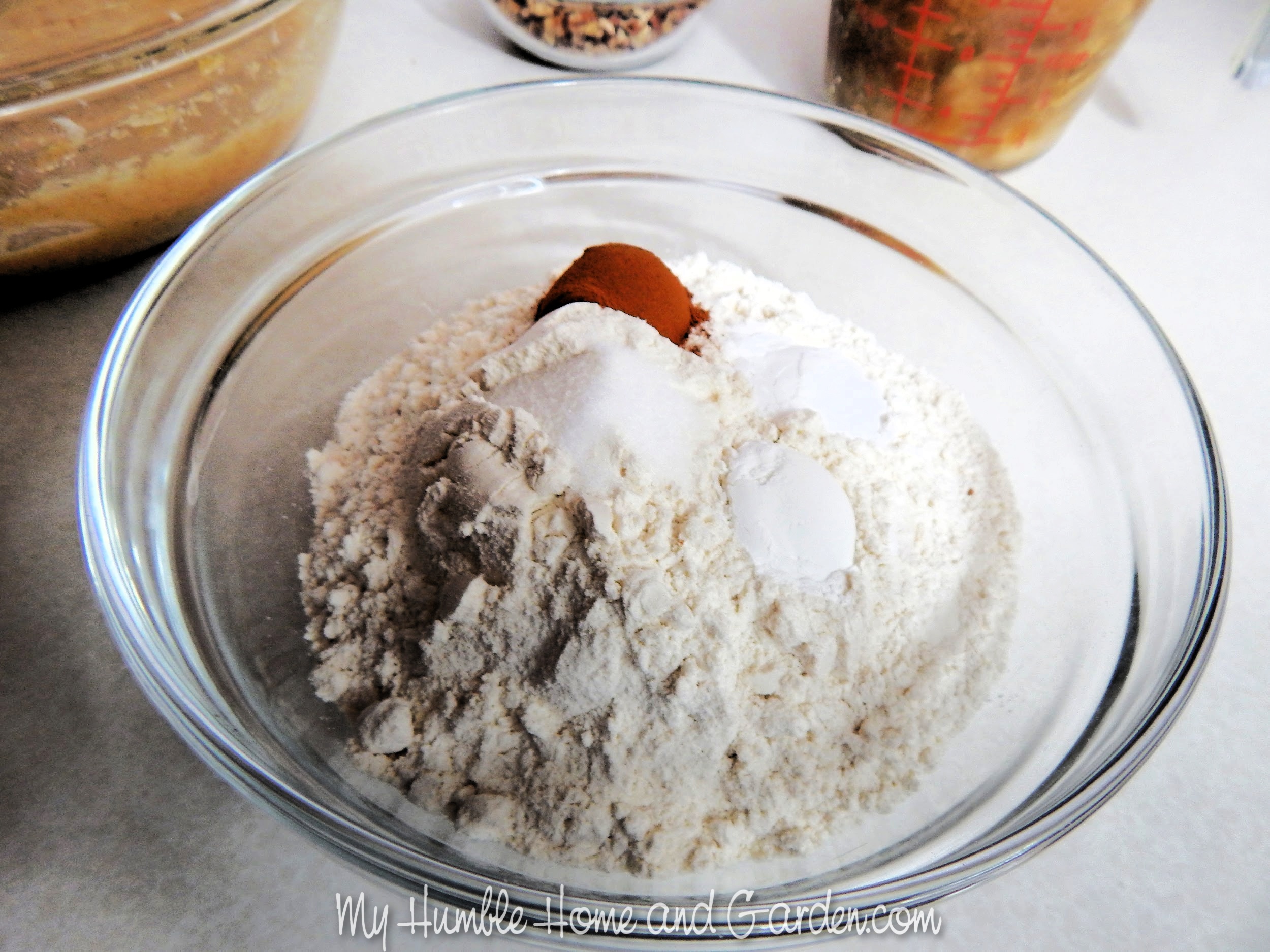 Combine flour, soda, baking powder, salt, and cinnamon. (This is not absolutely necessary, but it does blend everything together nicely. It’s such a simple step. Then, you won’t have to worry about someone getting a big bite of baking powder, soda, or salt!)