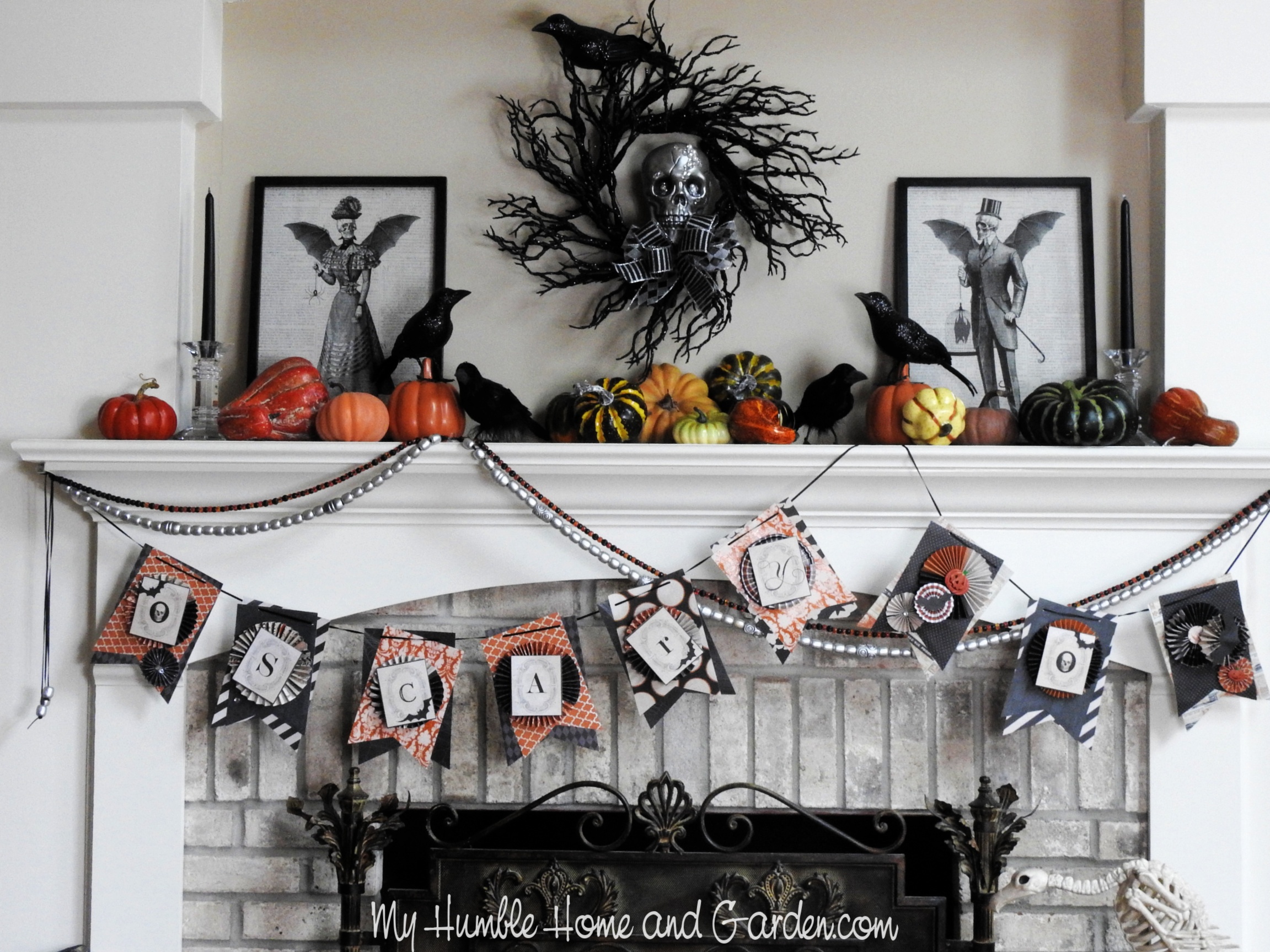 How To Decorate A Classy Fireplace Mantel For Halloween – Drape the scary banner #halloweenbanner #halloweenmantel #halloweendecor