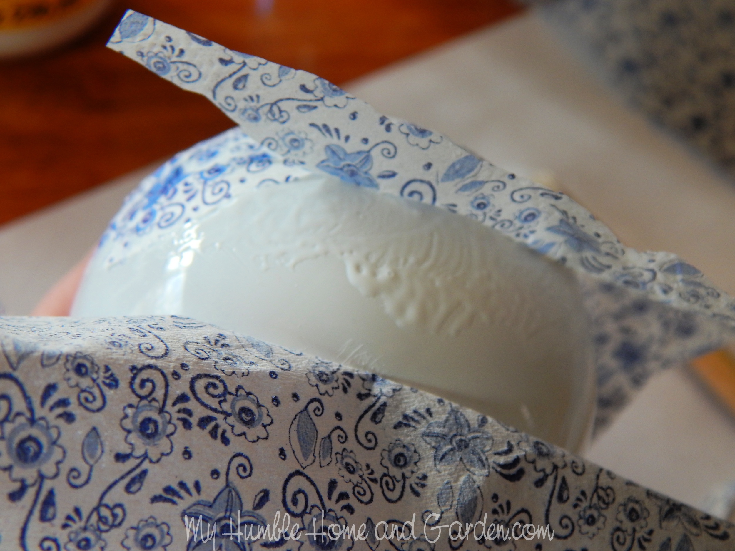 You can see that I left the slices of napkin loose on the end. Then, I went back and cut the excess napkin before completely gluing the sections.