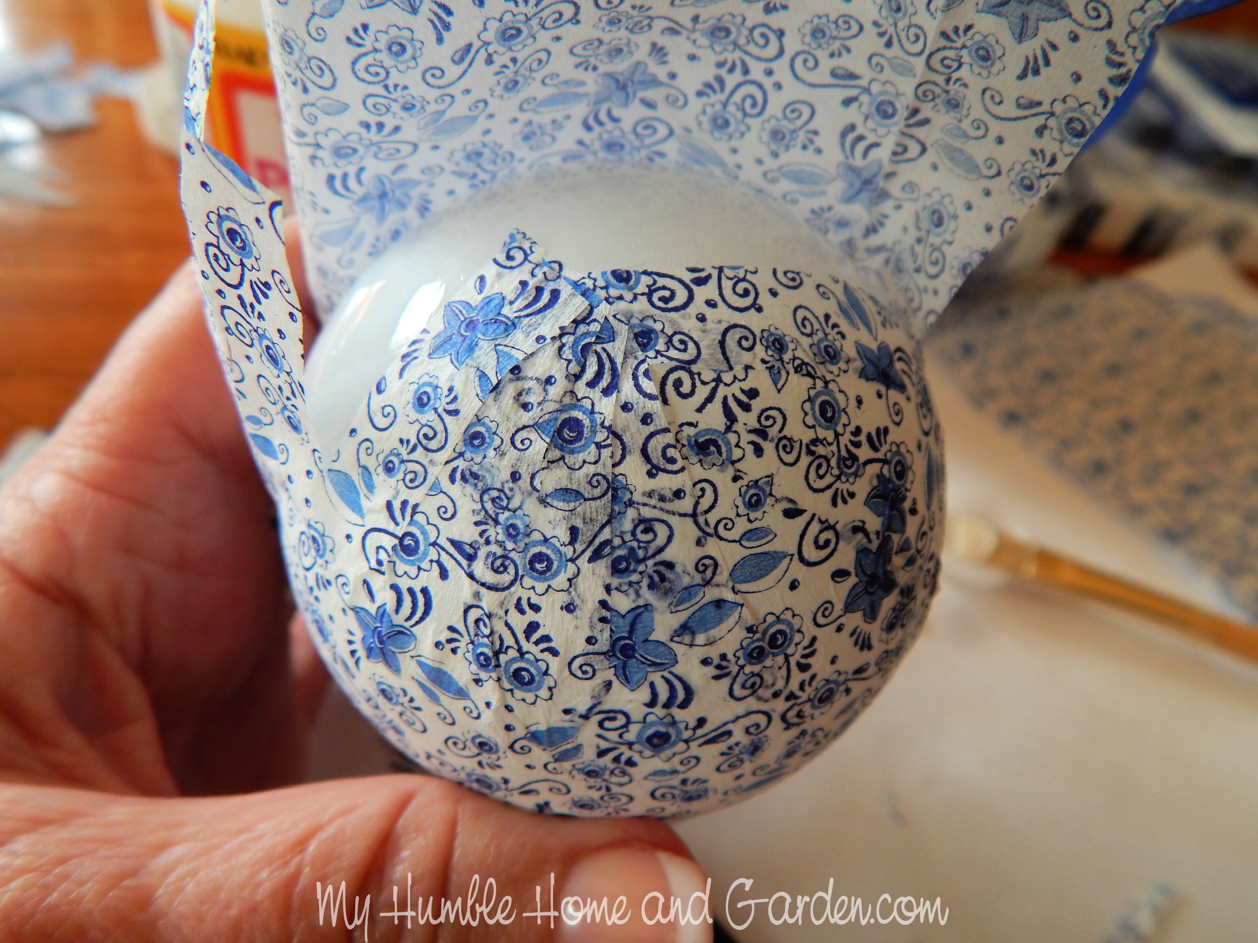 For these ornaments that are completely covered with the napkin, brush a coat of the Mod Podge over the surface for protection.