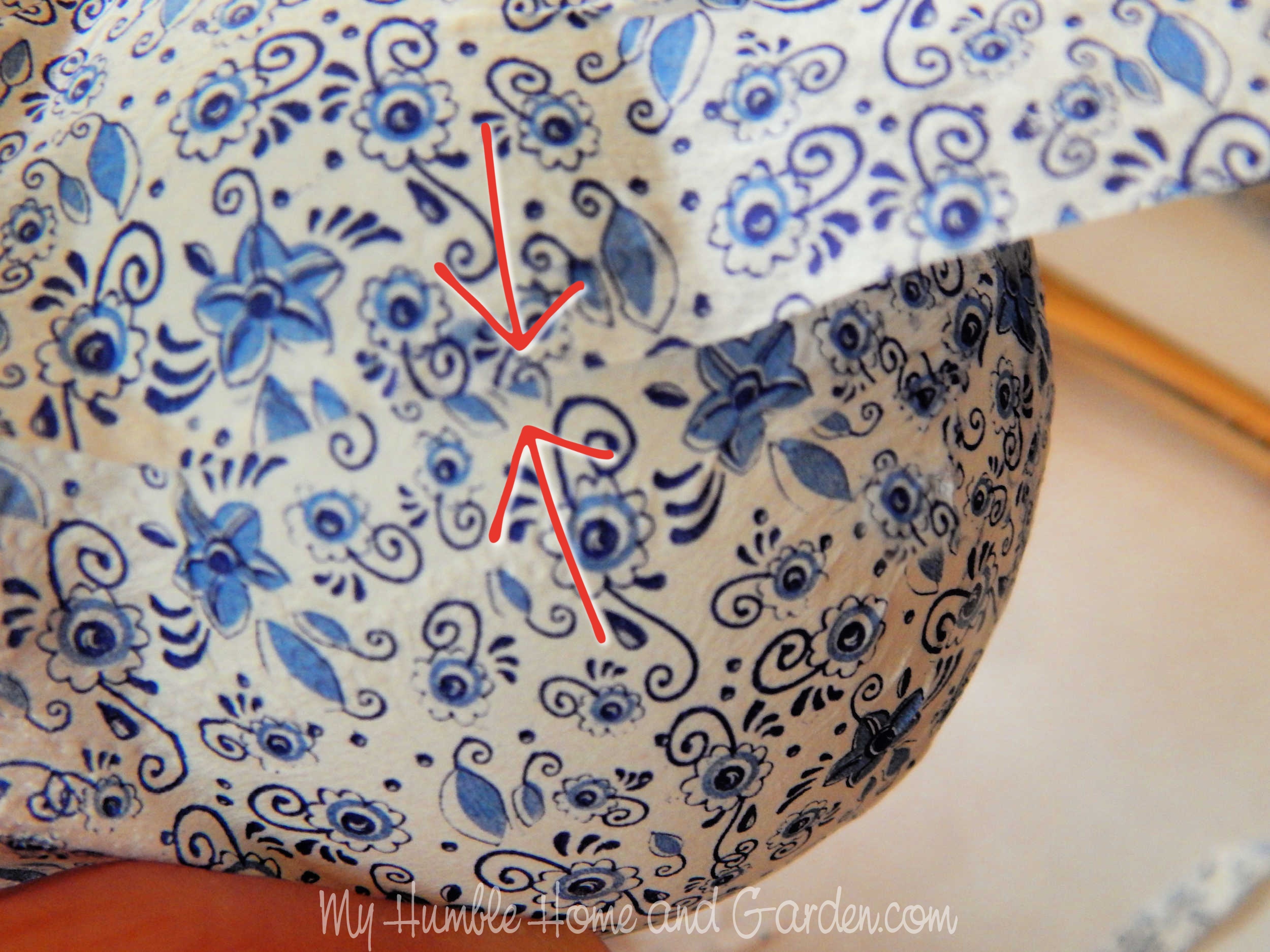 How To Make Beautiful Blue And White Chinoiserie Christmas Ornaments – Cut off the excess at the strip ends. #diyornaments #blueandwhite #Christmasornament