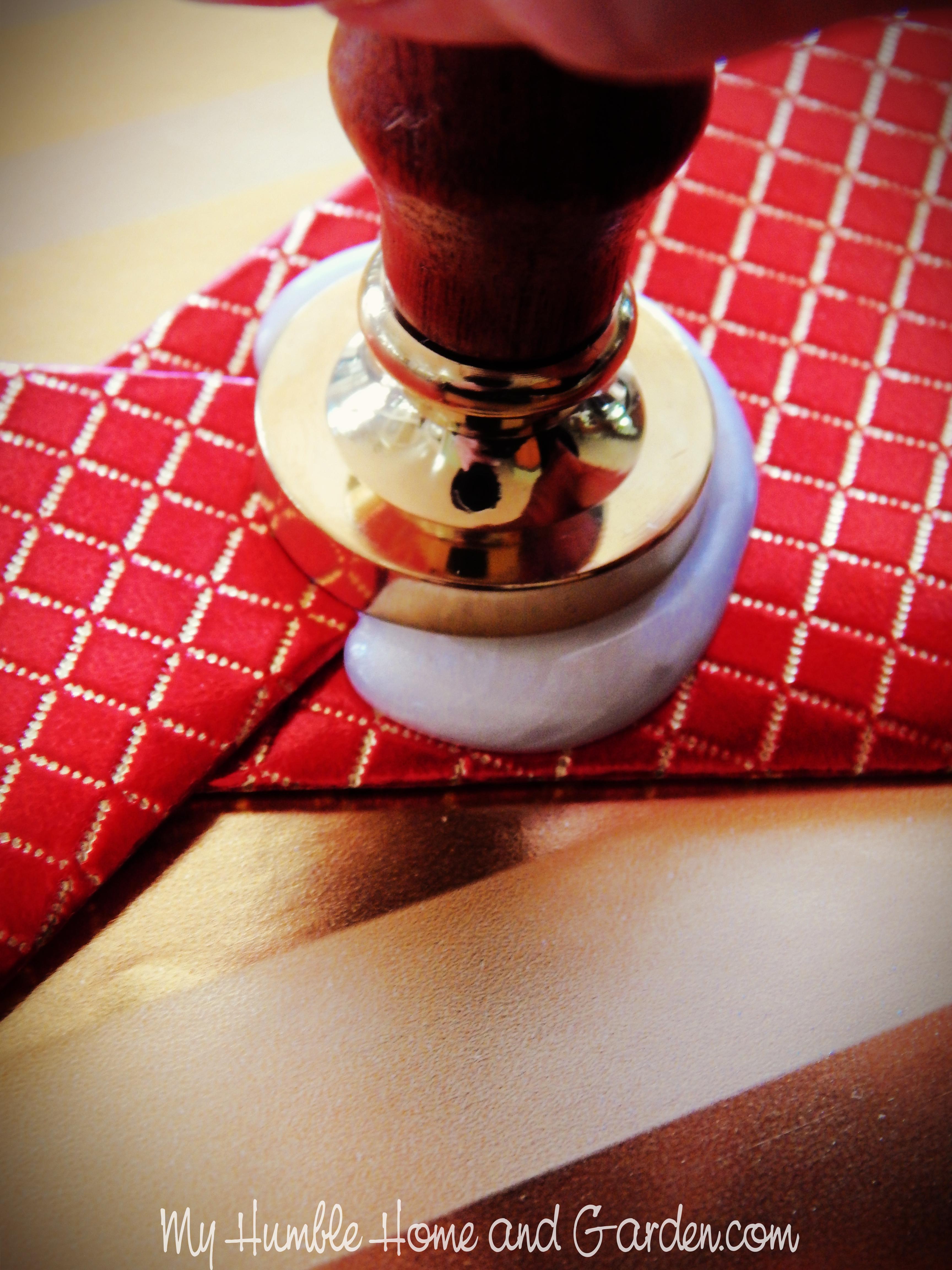 How To Wrap A Gift With Two Contrasting Papers – Pour the wax onto the end of the wrap. Place the stamp on the wax.