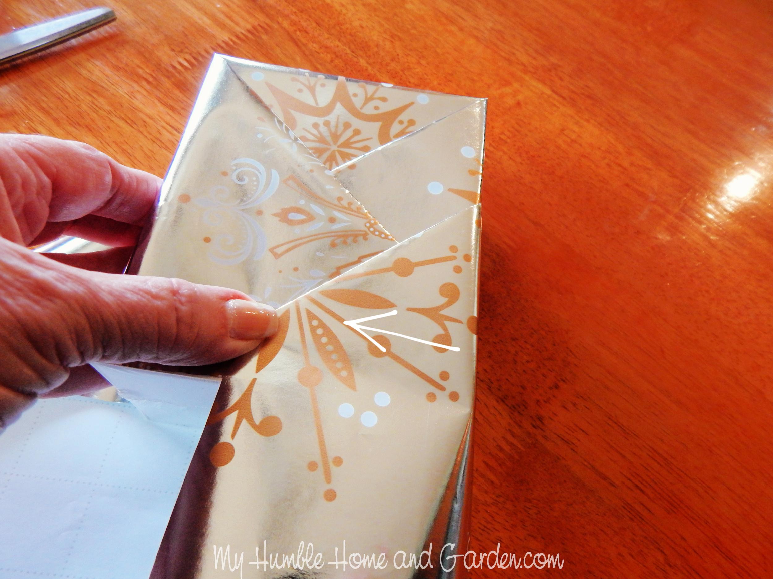 How To Gift Wrap Beautifully With A Kimono Fold — Fold the bottom flap over the top of the box.#giftwrap #kimonogiftwrap #diygiftwrap