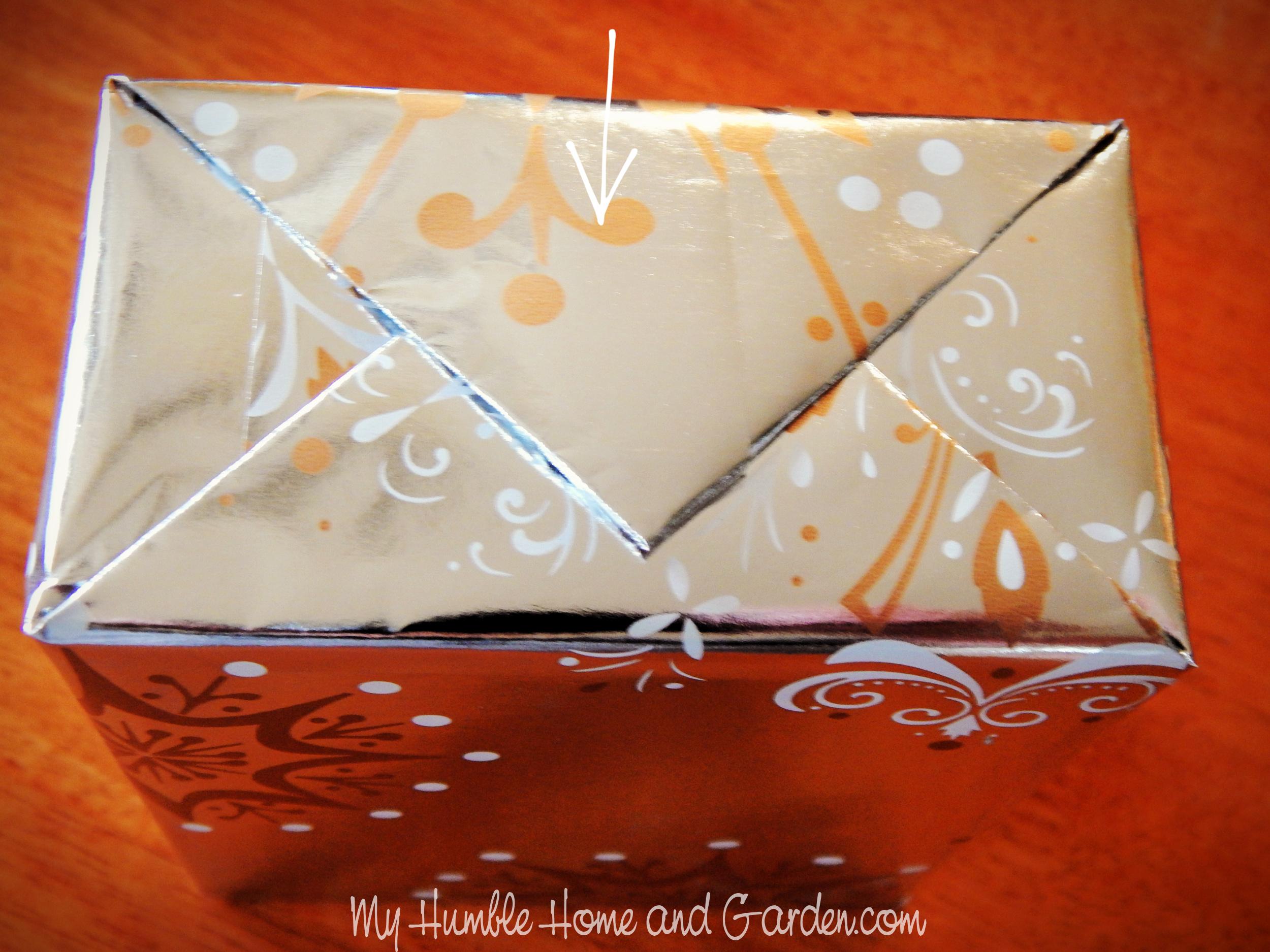How To Gift Wrap Beautifully With A Kimono Fold — Fold the bottom flap up and the top flap down. #giftwrap #kimonogiftwrap #diygiftwrap