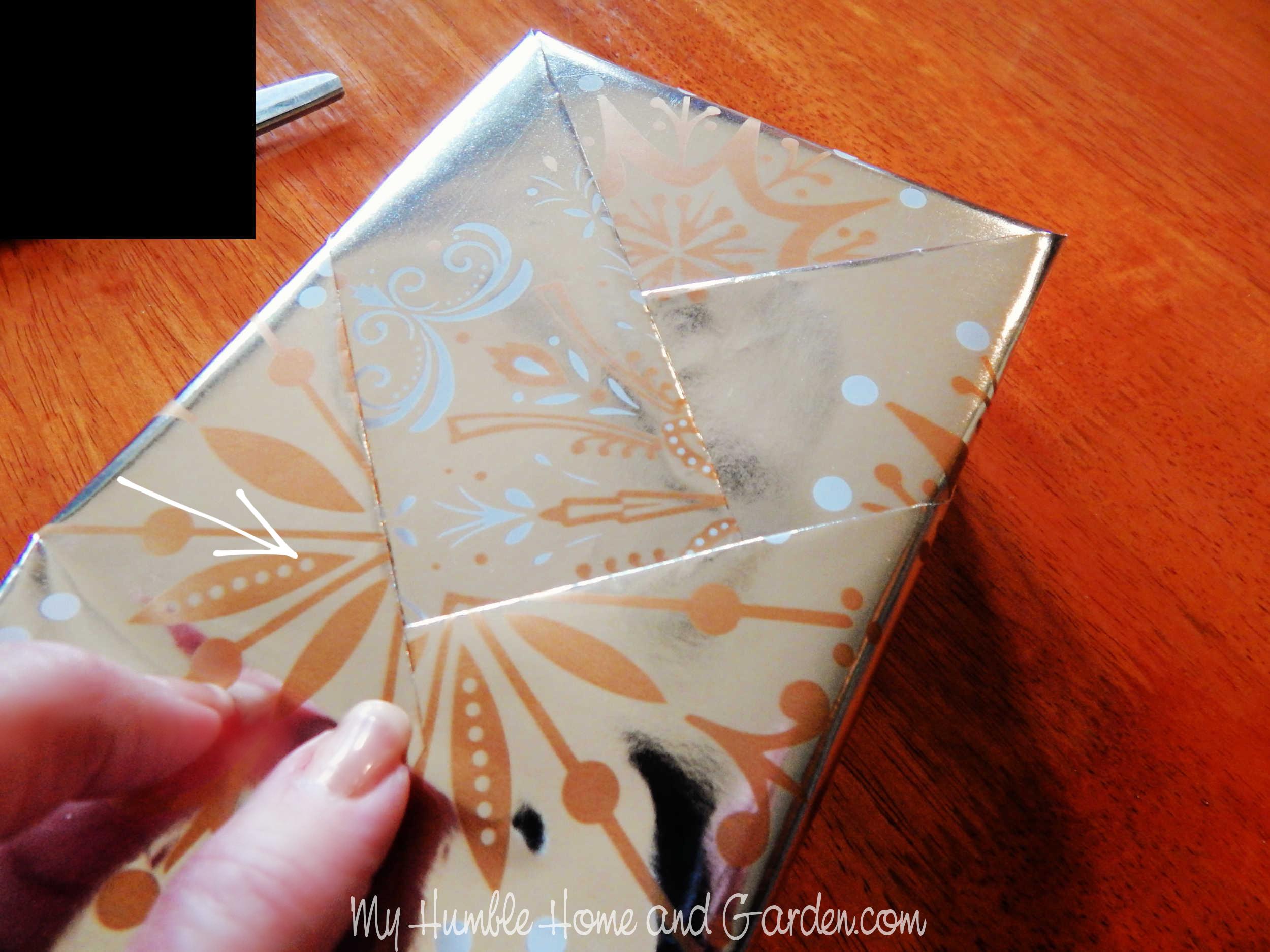 How To Gift Wrap Beautifully With A Kimono Fold — Fold the remaining bottom flap over the top of the box. #giftwrap #kimonogiftwrap #diygiftwrap
