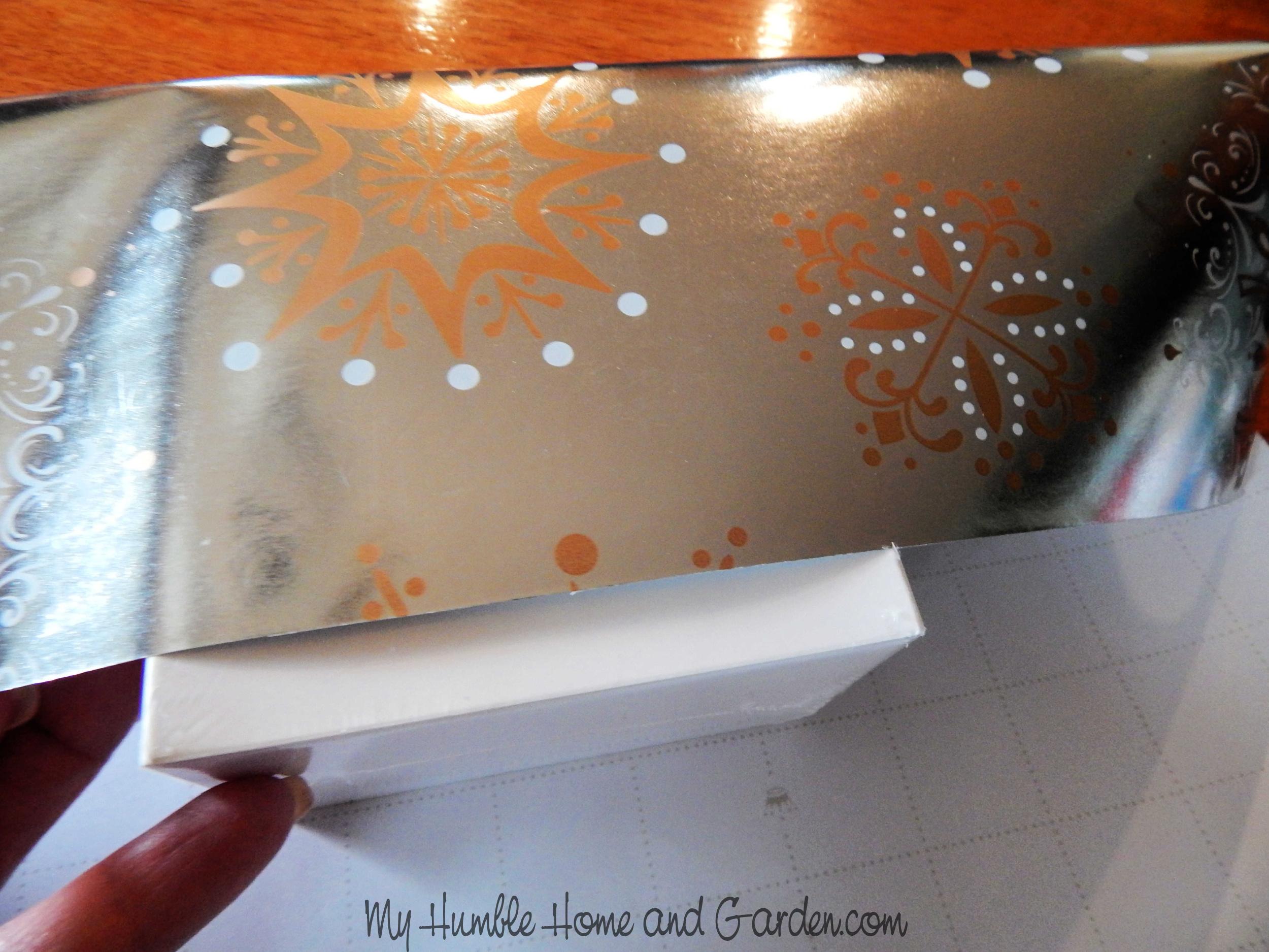 How To Gift Wrap Beautifully With A Kimono Fold — Pull the top edge of the gift wrap a little bit above the edge of the box . #giftwrap #kimonogiftwrap #diygiftwrap