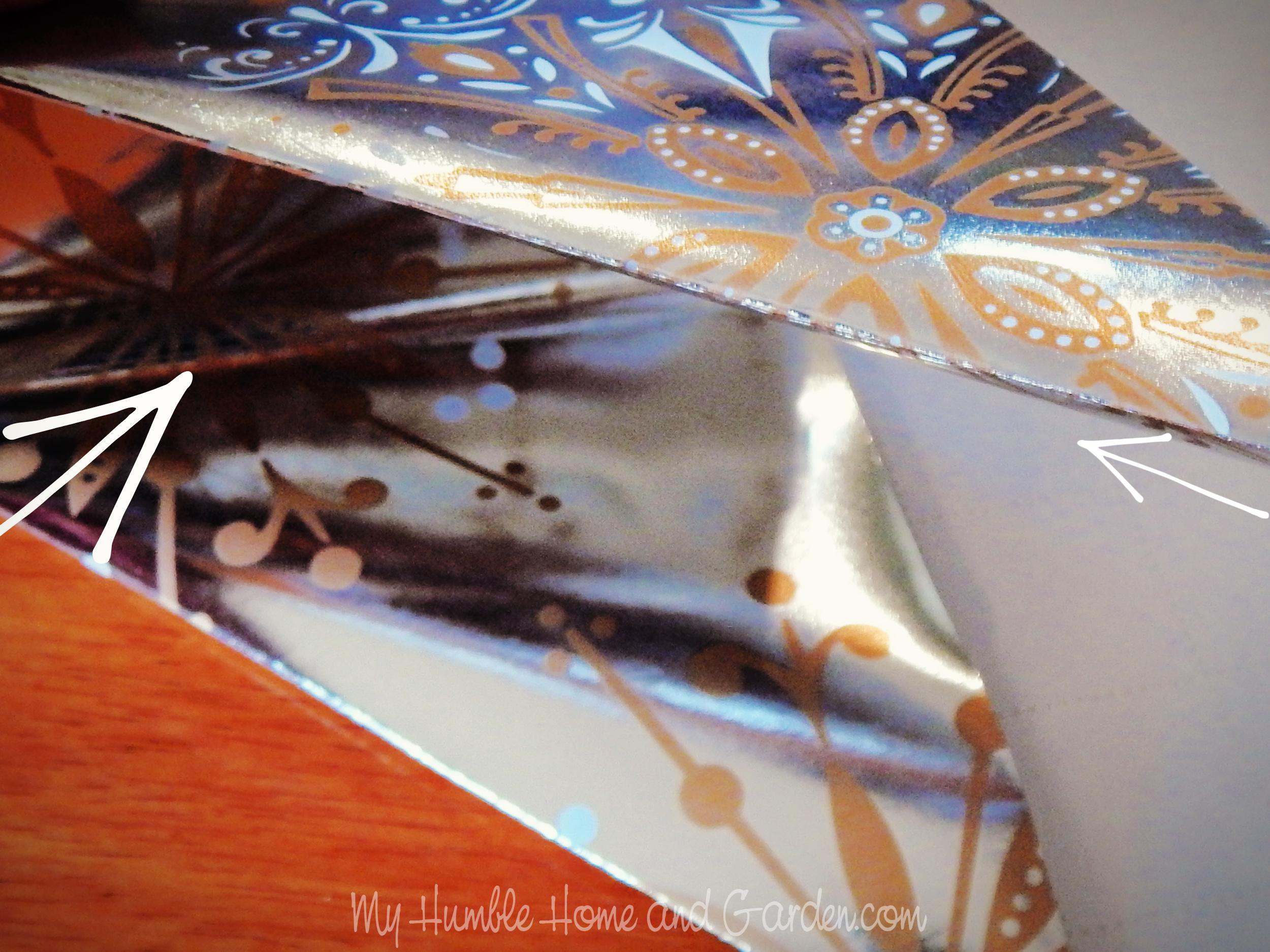 How To Gift Wrap Beautifully With A Kimono Fold — Repeat on the other side, making sure the corner is against the edge of the box and the table where they meet.#giftwrap #kimonogiftwrap #diygiftwrap