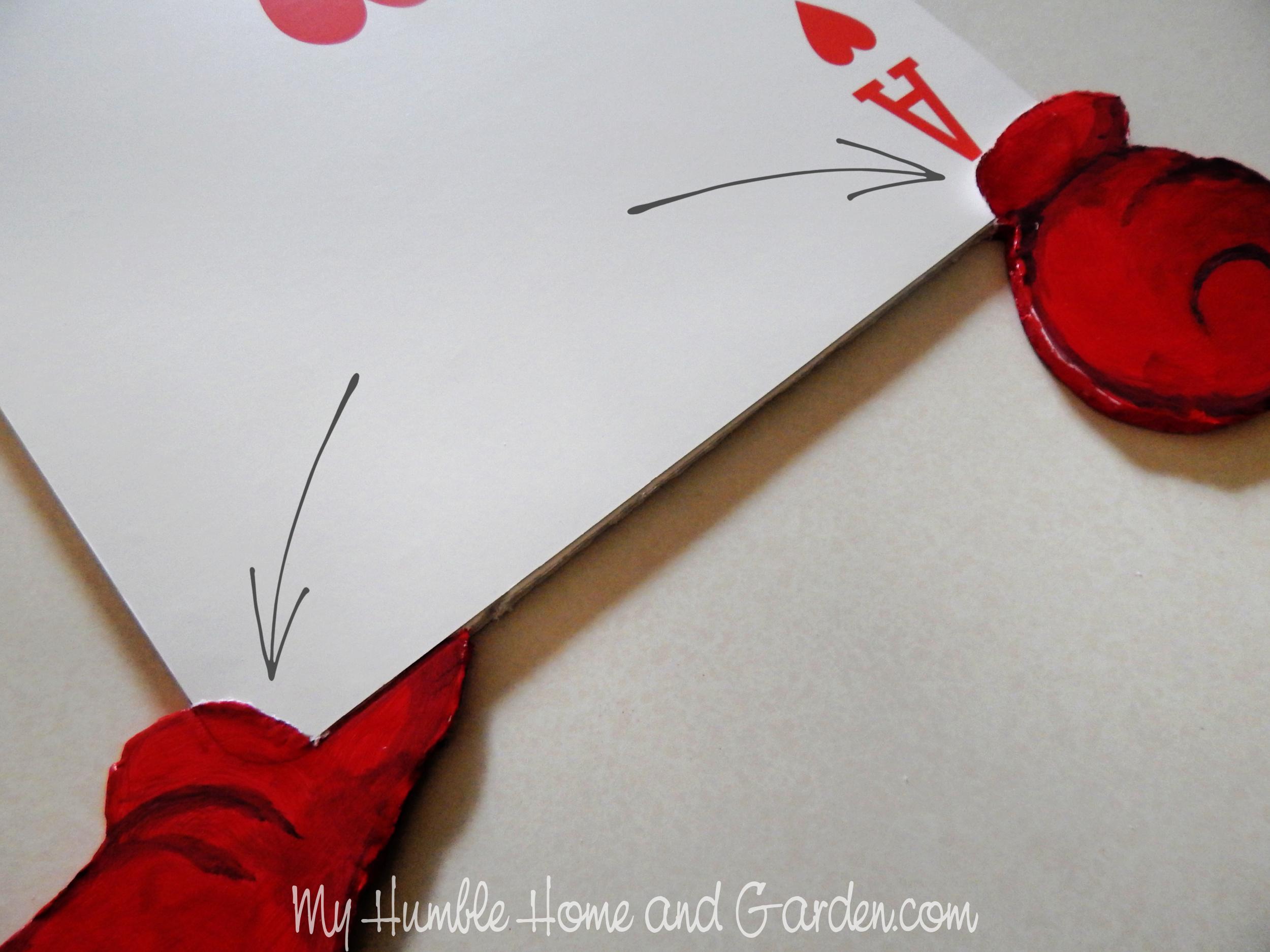 How To Easily Make Alice in Wonderland Card Soldiers – Glue the shoe edges over the card. #aliceinwonderland #cardsoldier #diycardsoldier #cardsoldiersaliceinwonderland