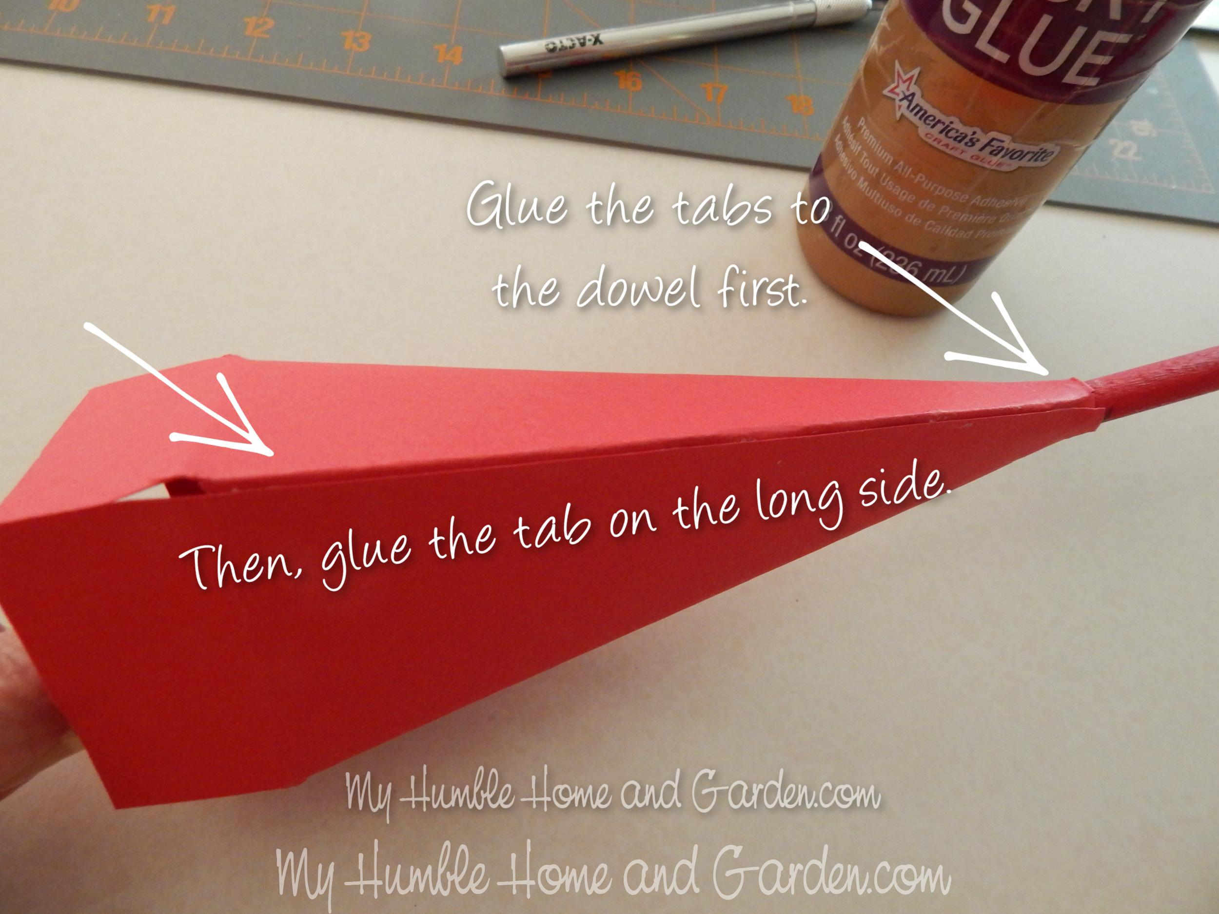 How To Easily Make Alice in Wonderland Card Soldiers – Glue the tabs onto the dowel.