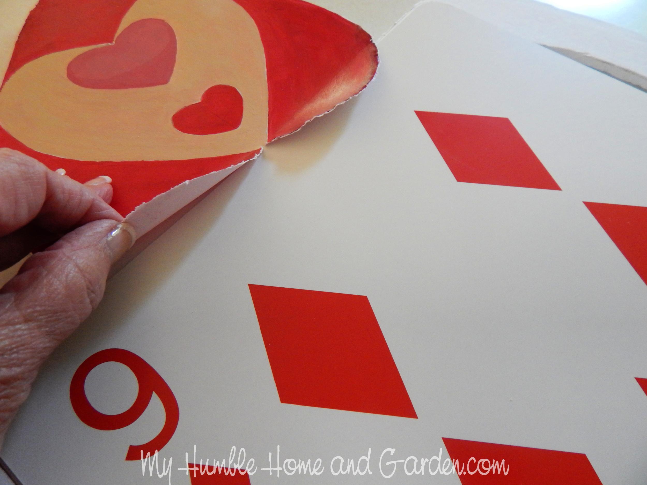 How To Easily Make Alice in Wonderland Card Soldiers -The lifted edge allows the card to slip underneath. . #aliceinwonderland #cardsoldier #diycardsoldier