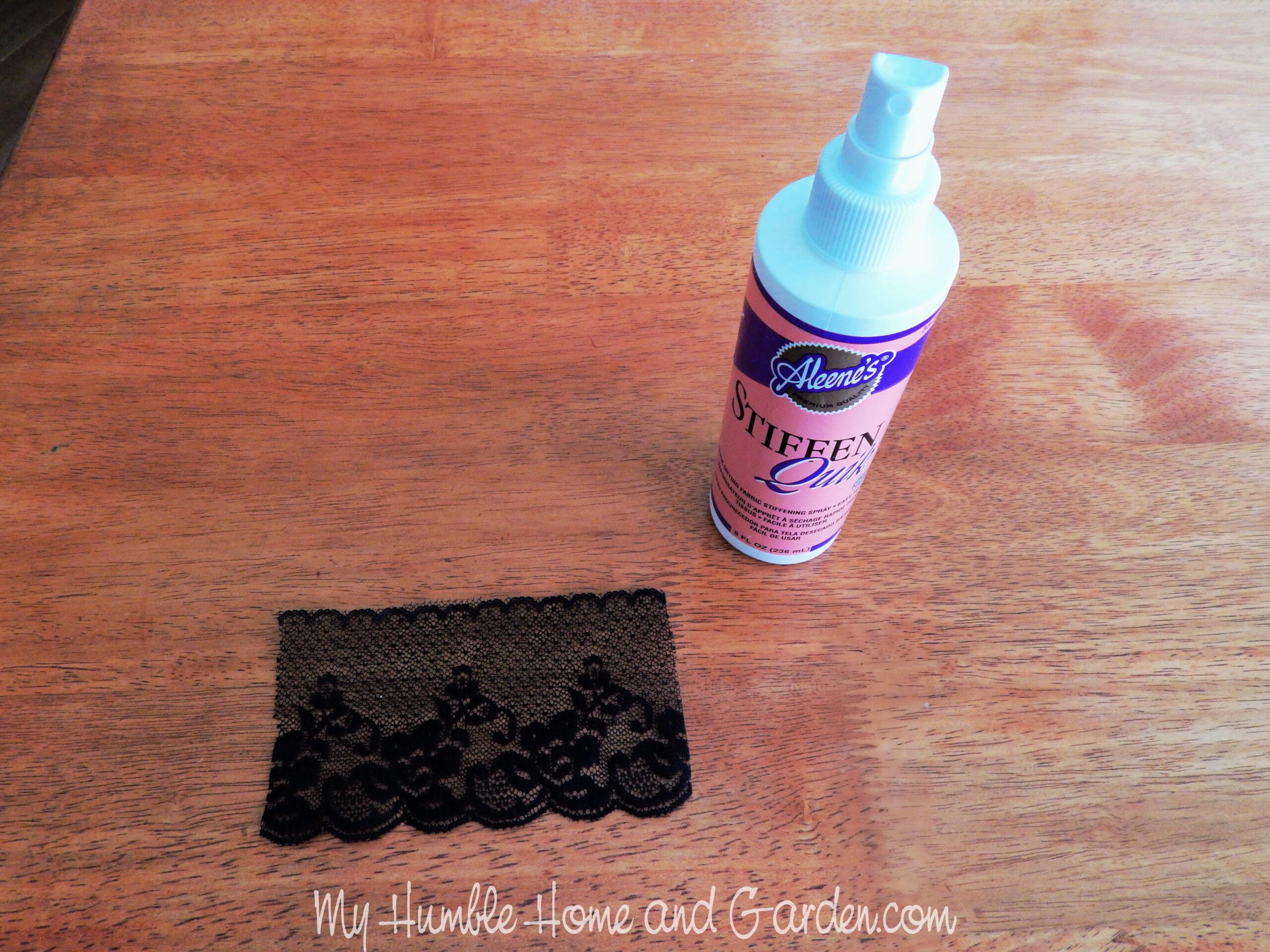 How to Create a Fairy Skeleton Bell Jar Display – Use basting adhesive to secure the butterfly to the lace… #miniskeleton #fairyskeleton #skeleton