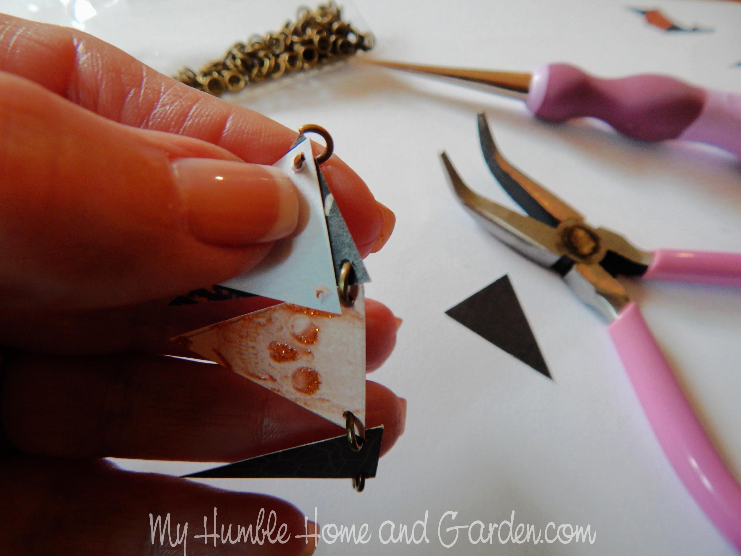 Attach a jump ring to the triangles. Posted on 2022-09-152022-09-16Full size 2500 × 1875 Attach a jump ring to the corners of the triangle. How to Create a Fairy Skeleton Bell Jar Display Part 2 – Make the pennant for the tree. #Halloweenpennant #fairyskeleton