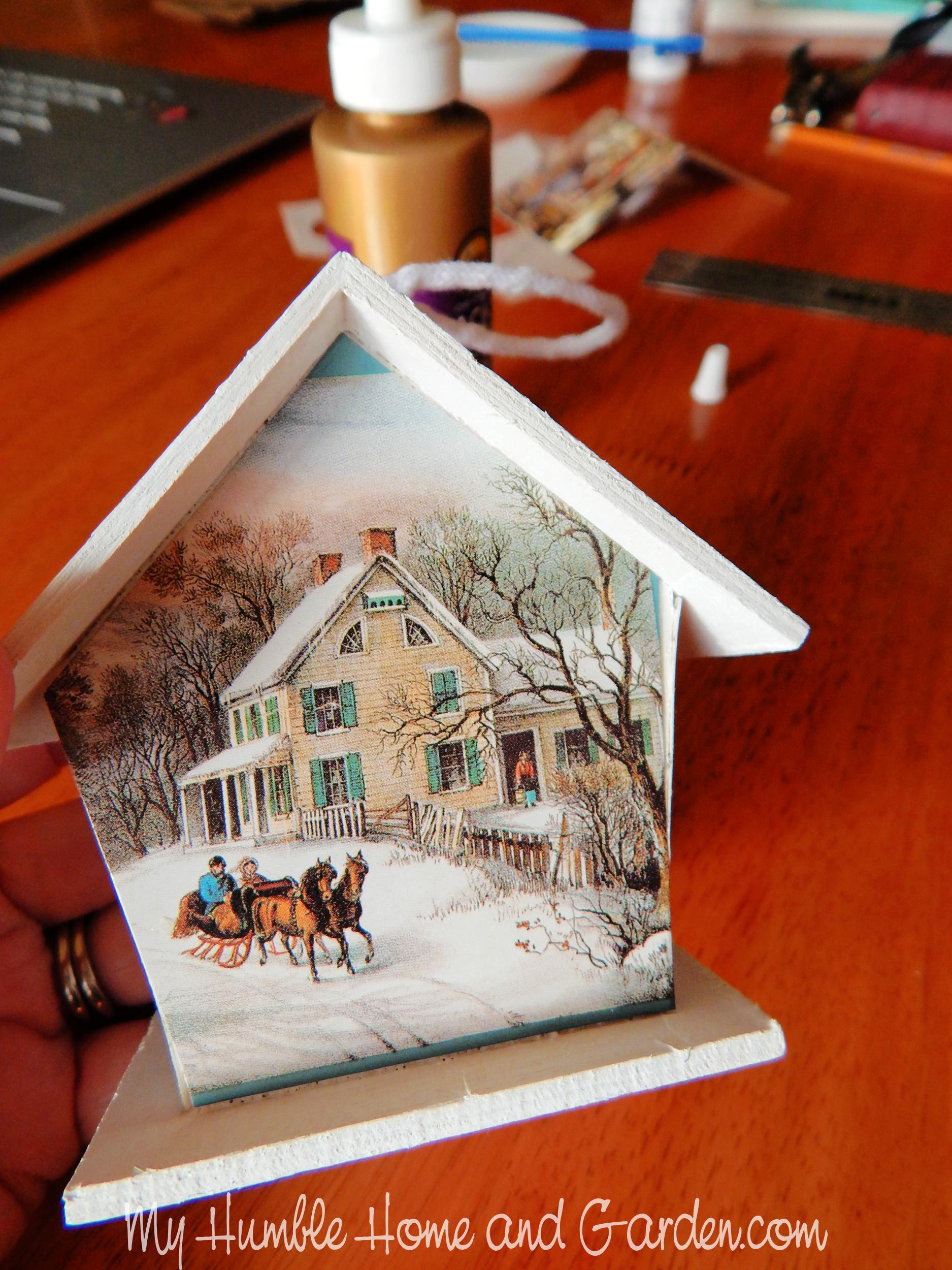 Glue the Christmas card cutout to the back. Posted on 2022-11-262022-11-27Full size 1875 × 2500 How to Recycle Christmas Cards to Make Ornaments – Dab glue onto the back side and glue to the wooden bird house.