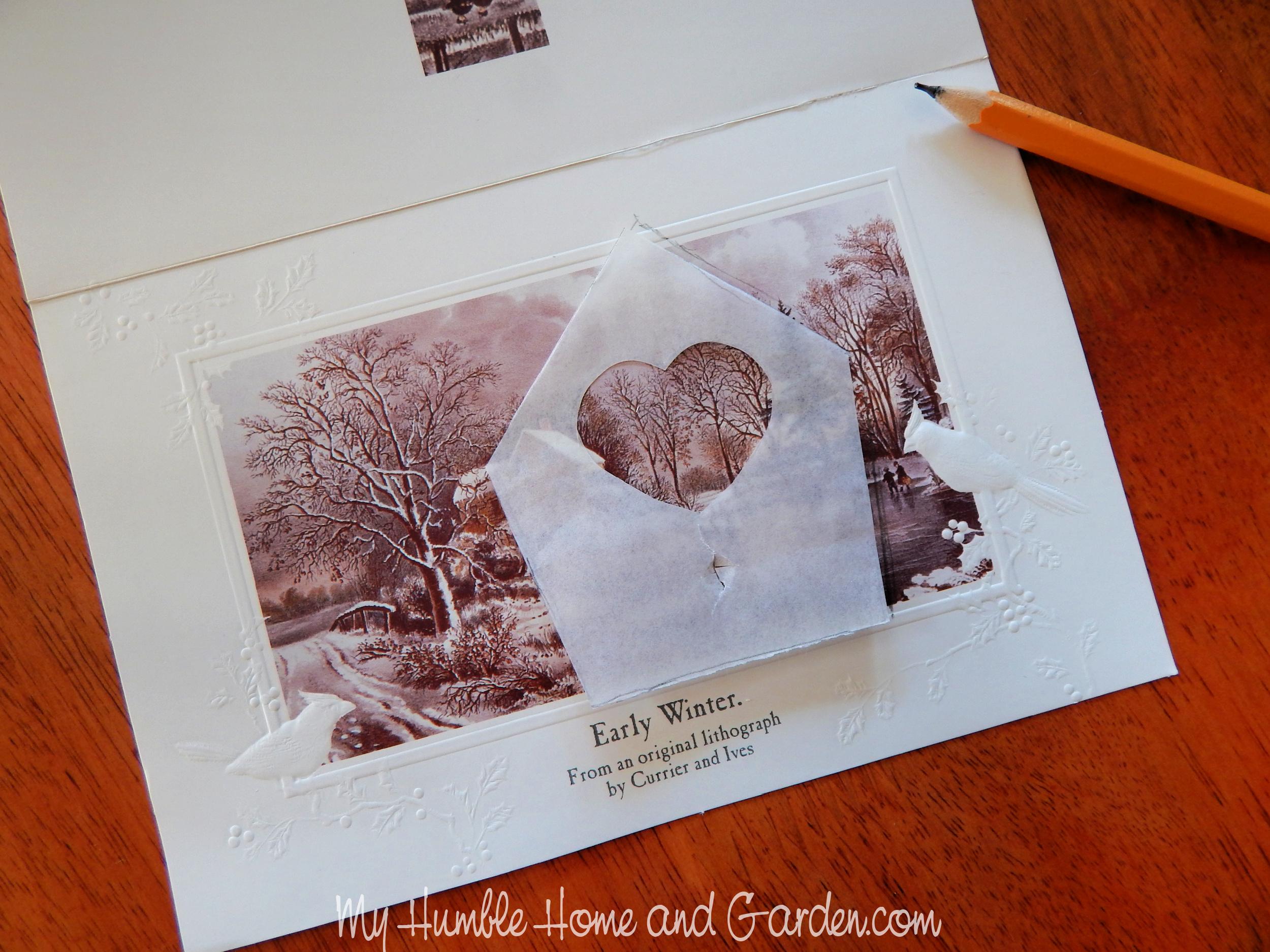 How to Recycle Christmas Cards to Make Ornaments – Position the template on the card. #recycleChristmascards