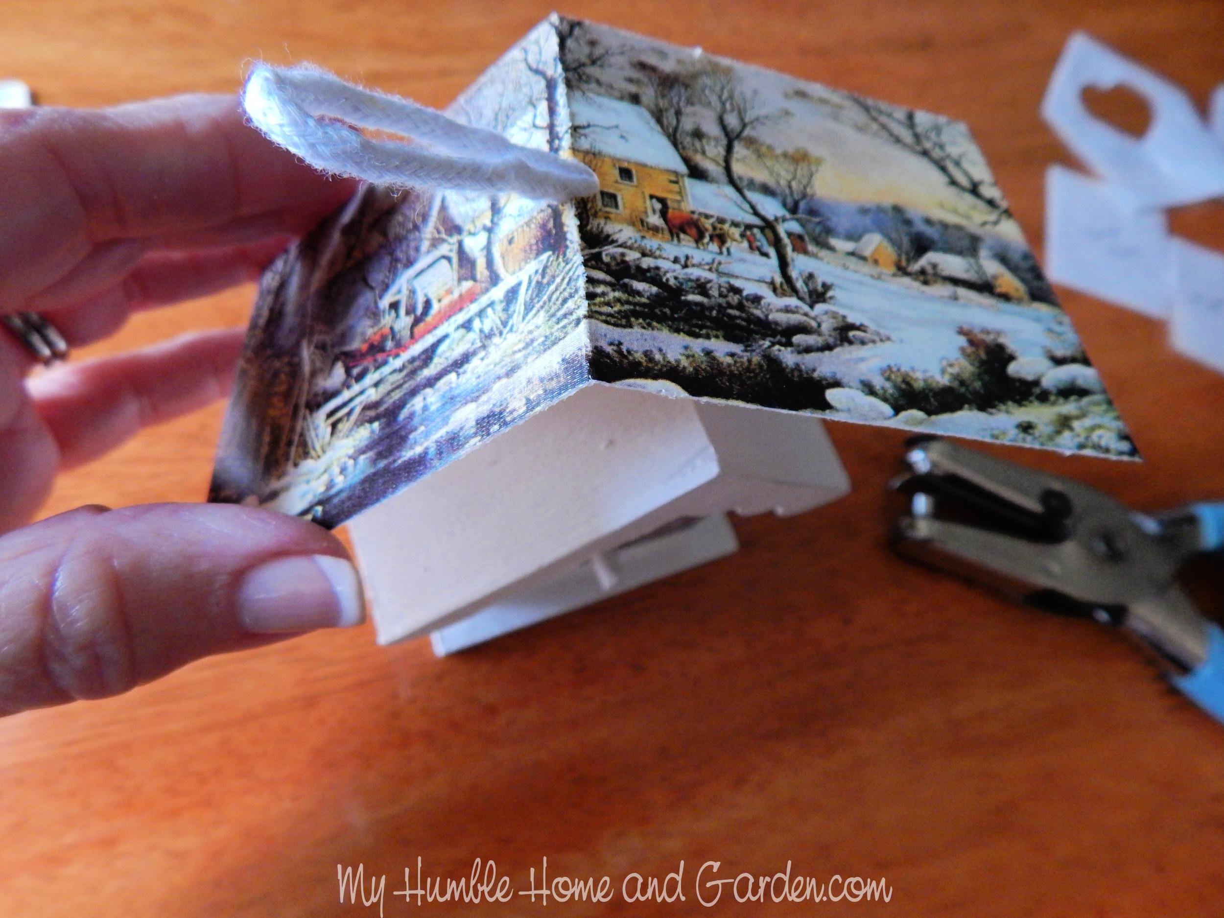 Thread the loop through the punched hole. Posted on 2022-11-272022-11-27Full size 2500 × 1875 Thread the loop through the punched hole. How to Recycle Christmas Cards to Make Ornaments – #recycleChristmascards #Christmascards #Christmasornaments