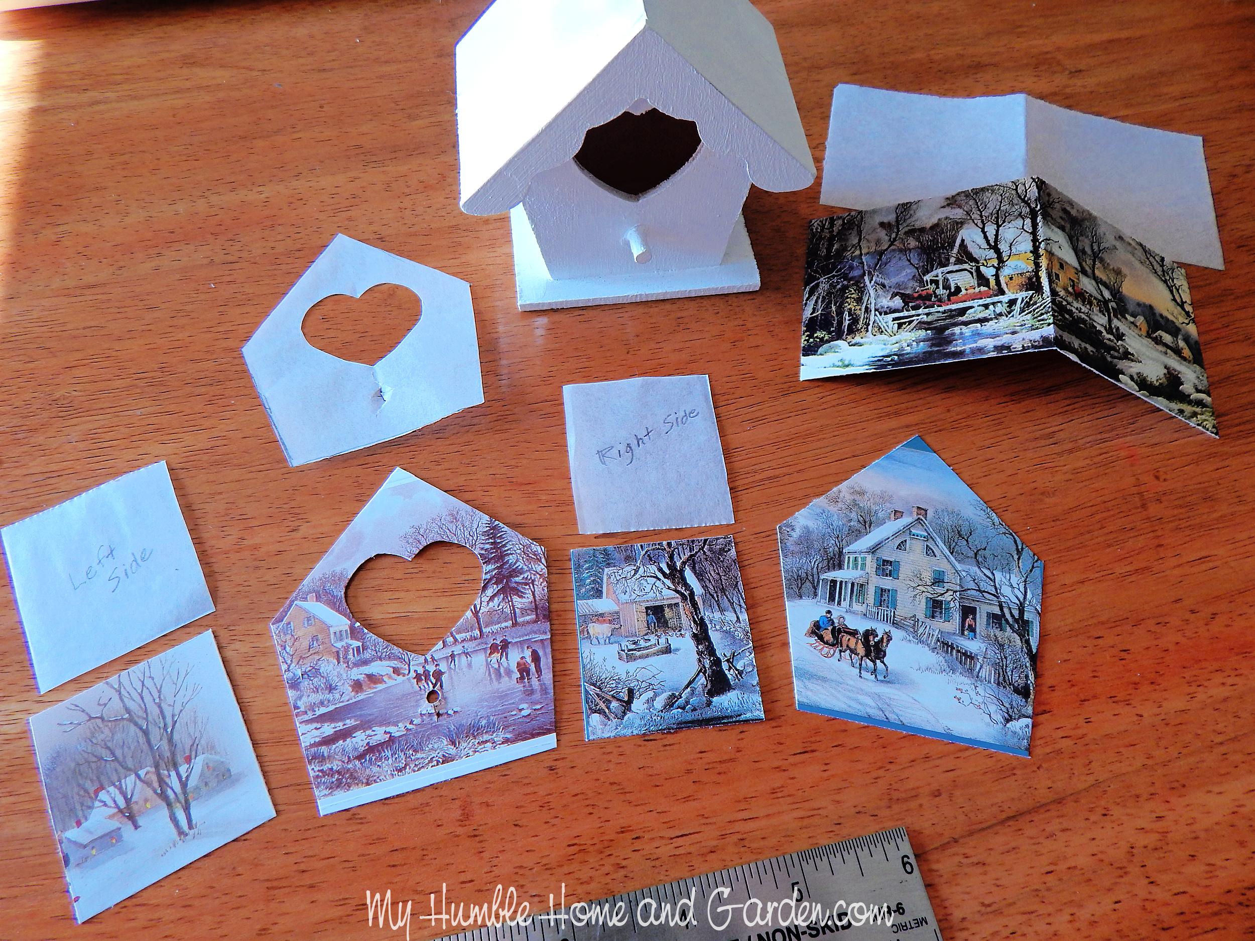 How to Recycle Christmas Cards to Make Ornaments – Use the templates to cut out front, sides, back, and roof. #recycleChristmascards