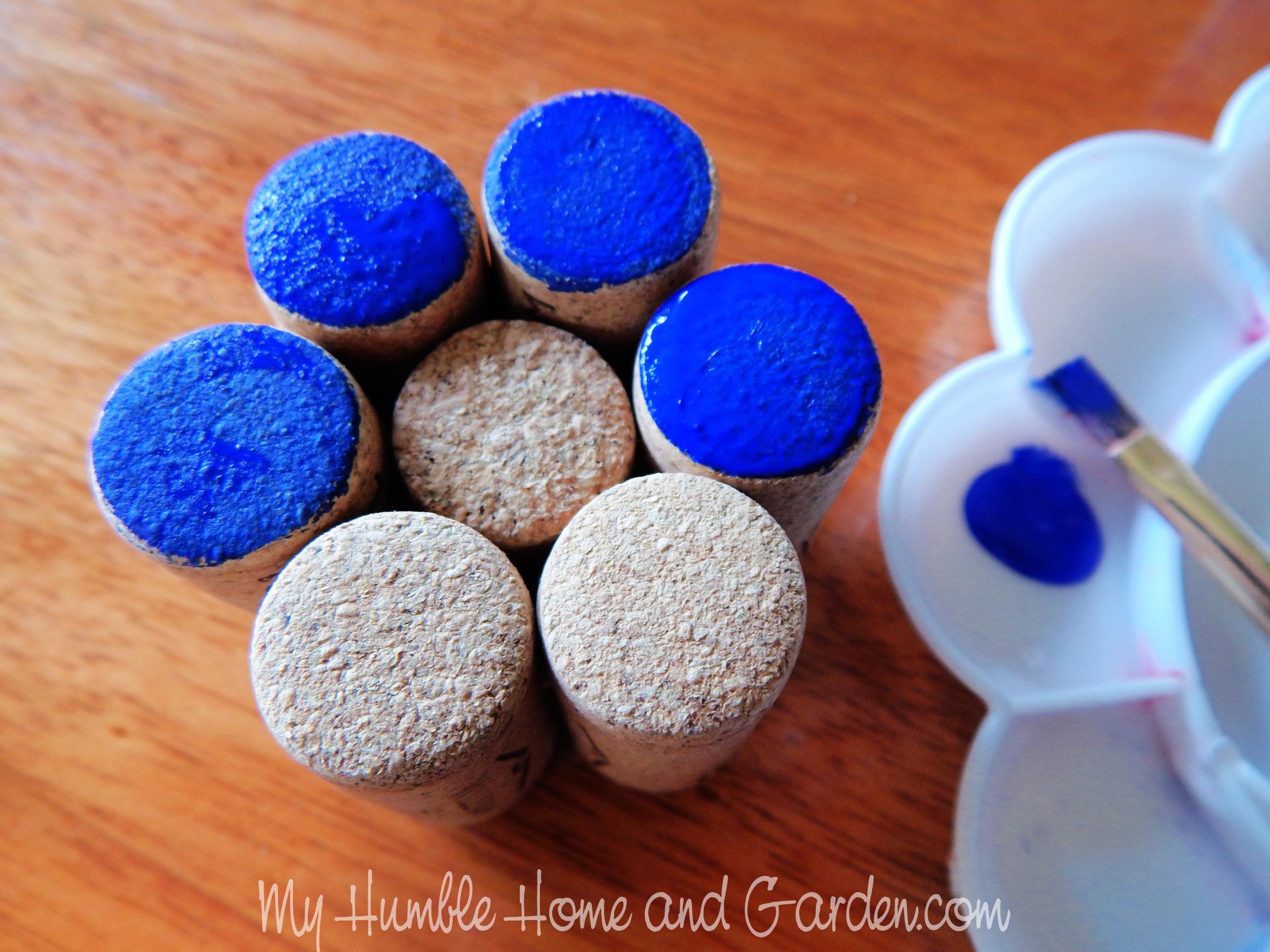 How to Make a Mary Engelbreit-Inspired Wine Cork Wreath – Paint the tops of the wine corks. #winecork #winecorkflowers #upcycledwinecorks