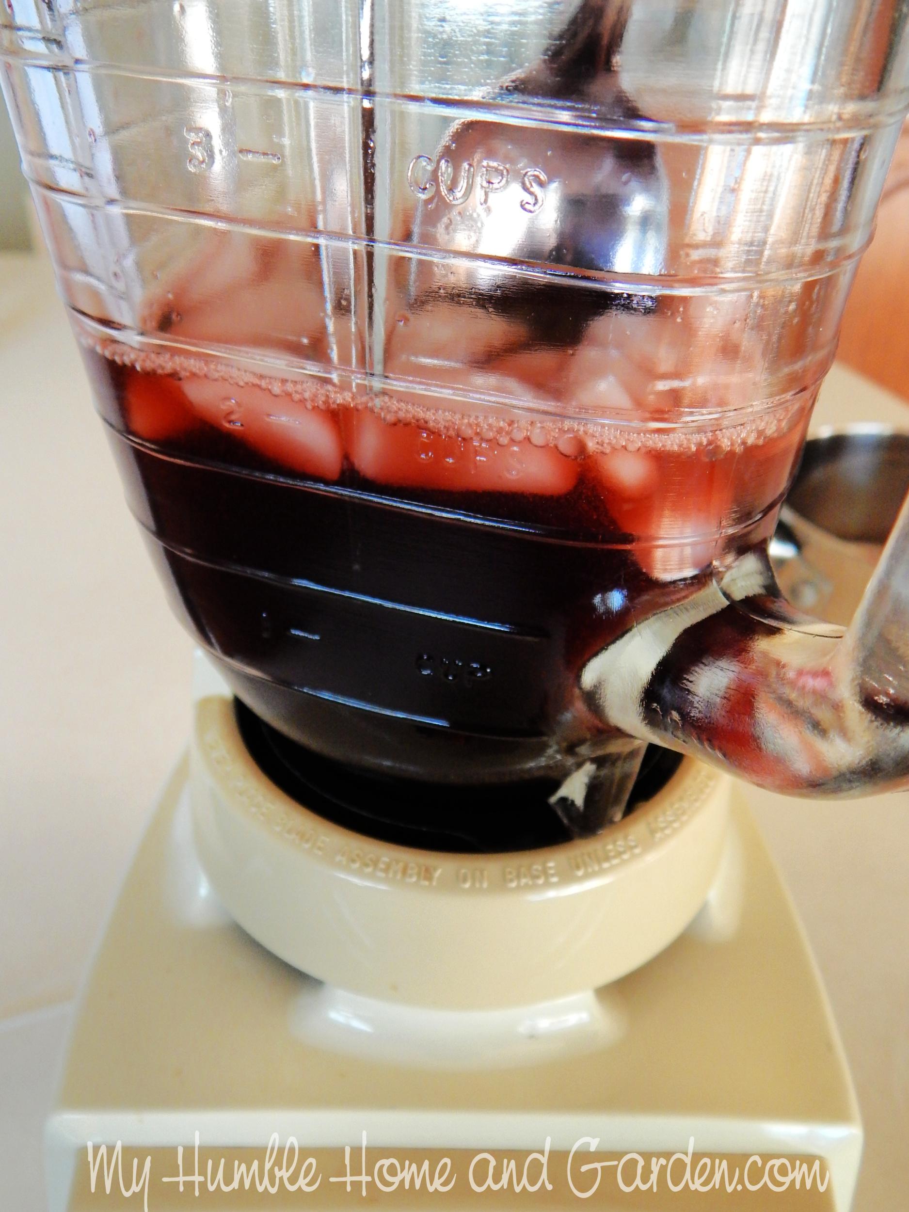 Add the ice and juice to the blender container. Stir until the ice cubes are partially melted.