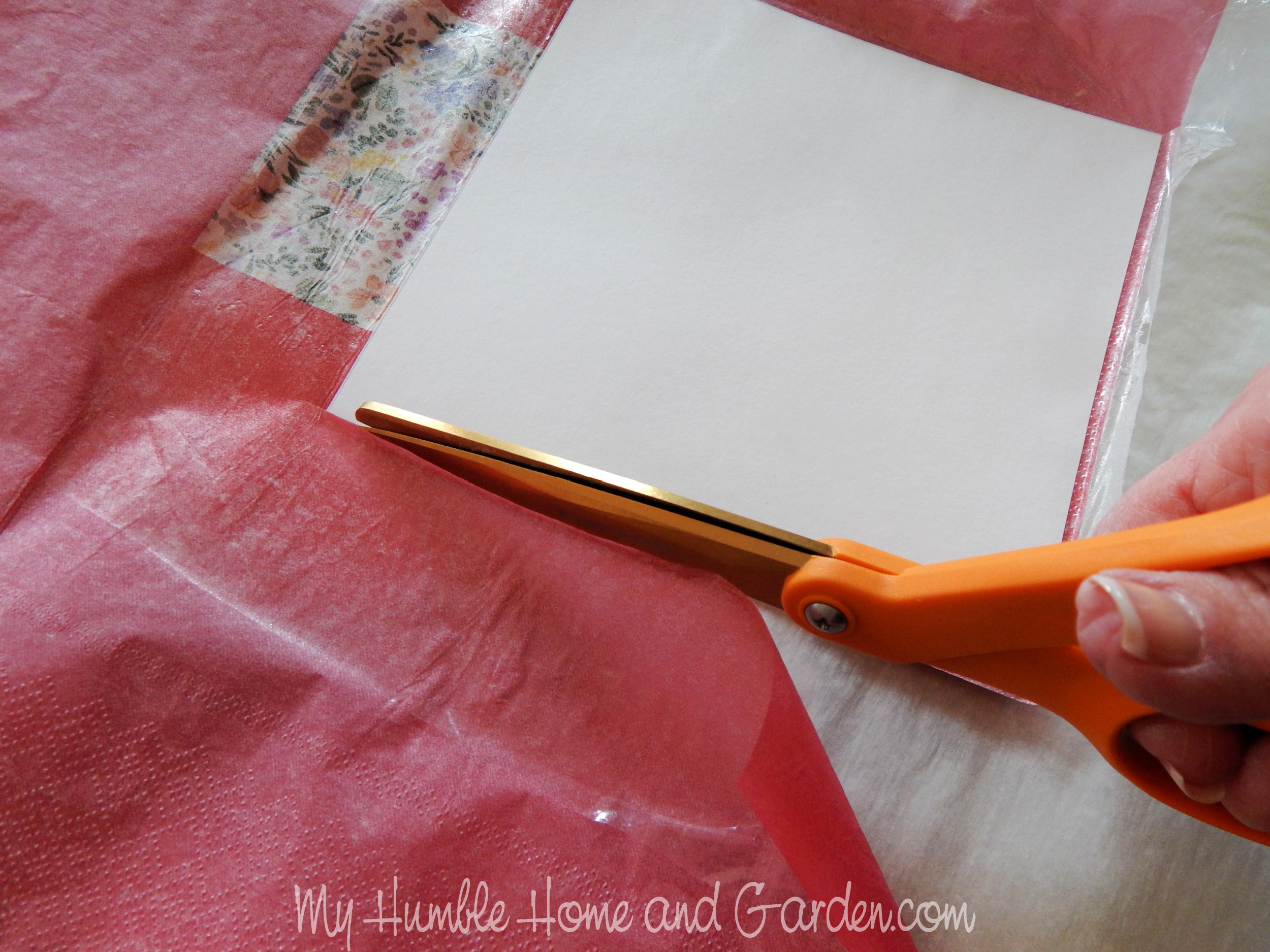 Paper Napkins Transfer Idea for an Amazing Mini Gift Box – Cut around the cardstock. #papernapkinstransfer #papernapkintransfer
