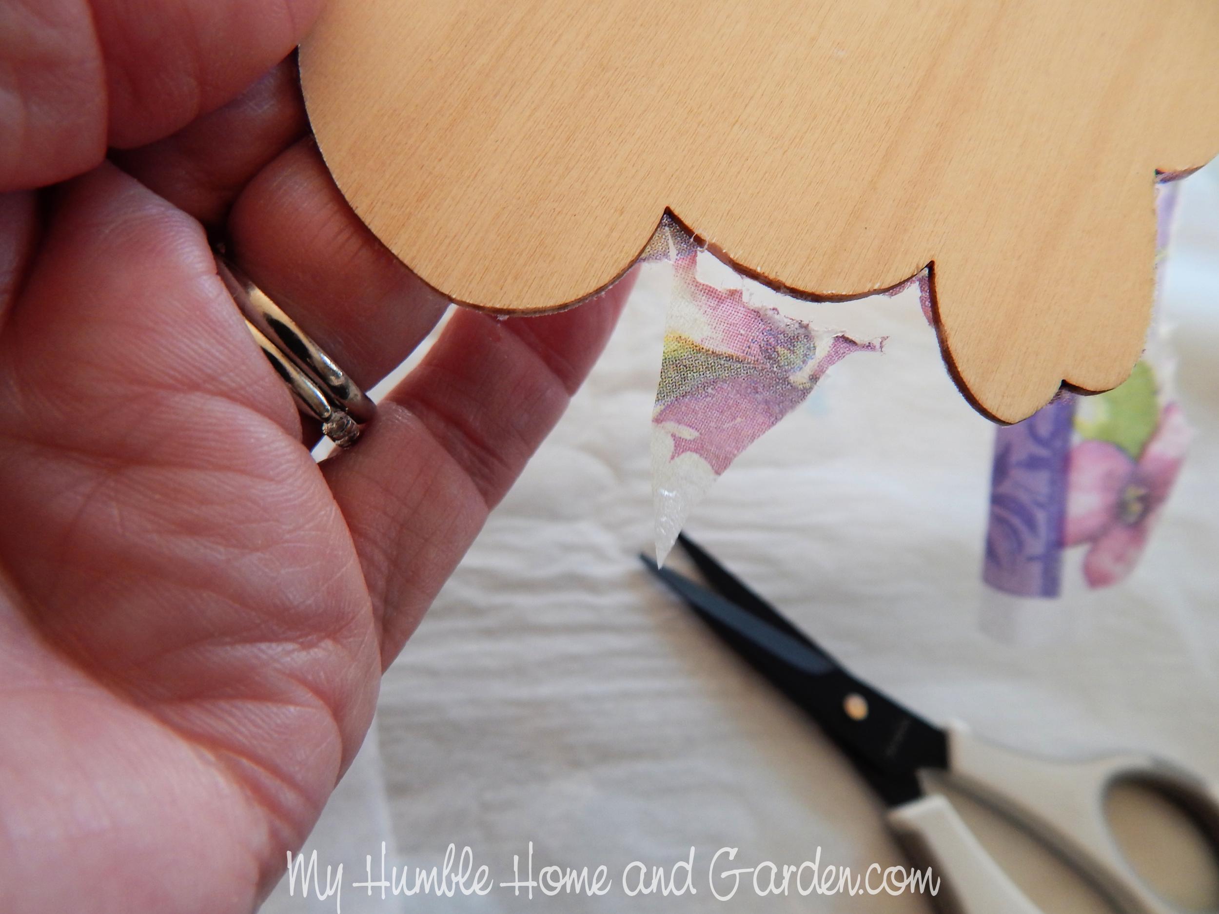 Cut the indentations. Posted on 2023-03-022023-03-02Full size 2500 × 1875 Trim the napkin that the sandpaper pad can’t reach. How to Do Paper Napkin Transfer on Wooden Bunnies – Wooden Bunnies garland. #woodenbunnies #Easter #eastergarland
