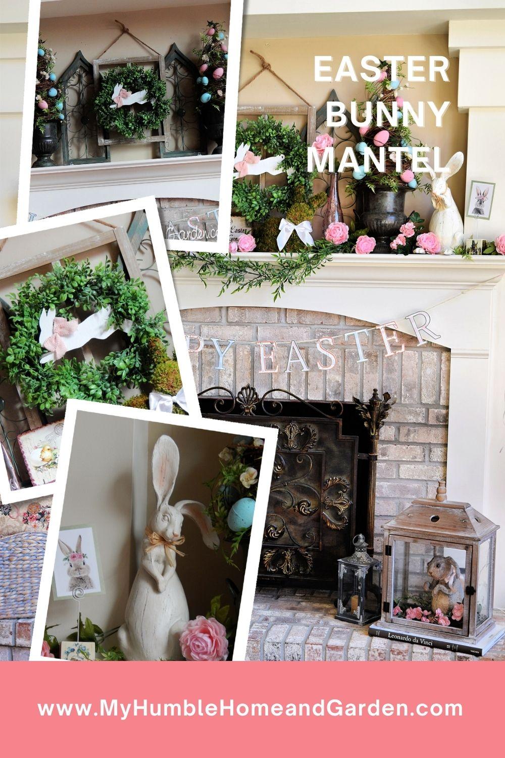 Easter Bunny Spring Mantel Decor You’ll Love – Bunny Picture on a vintage cube wire photo holder. #Easterbunny #Easter #bunny #mantel