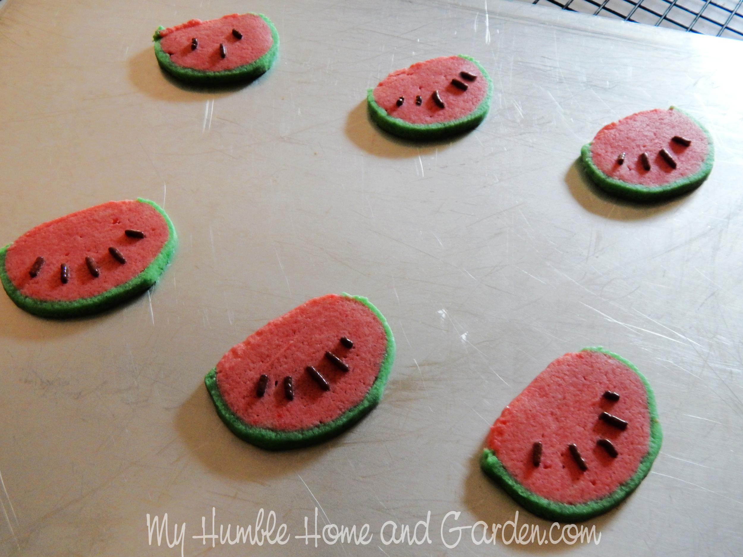 How to Make Watermelon Slice and Bake Sugar Cookies – Place cookies on the cookie sheet. #watermeloncookies #watermelonsliceandbakecookies #sliceandbakecookies
