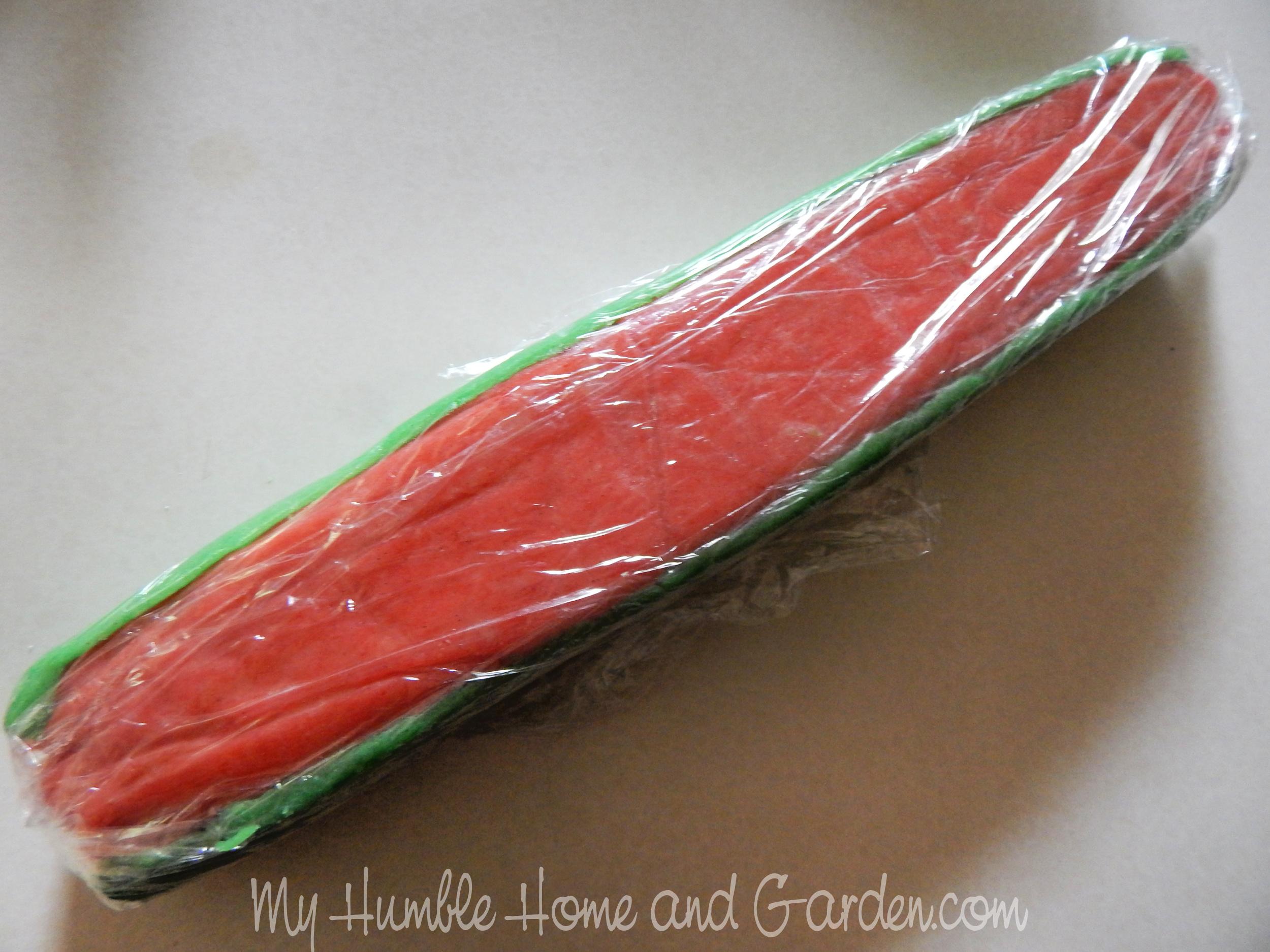 How to Make Watermelon Slice and Bake Sugar Cookies – Wrap in plastic wrap and refrigerate. #watermeloncookies #sliceandbakecookies