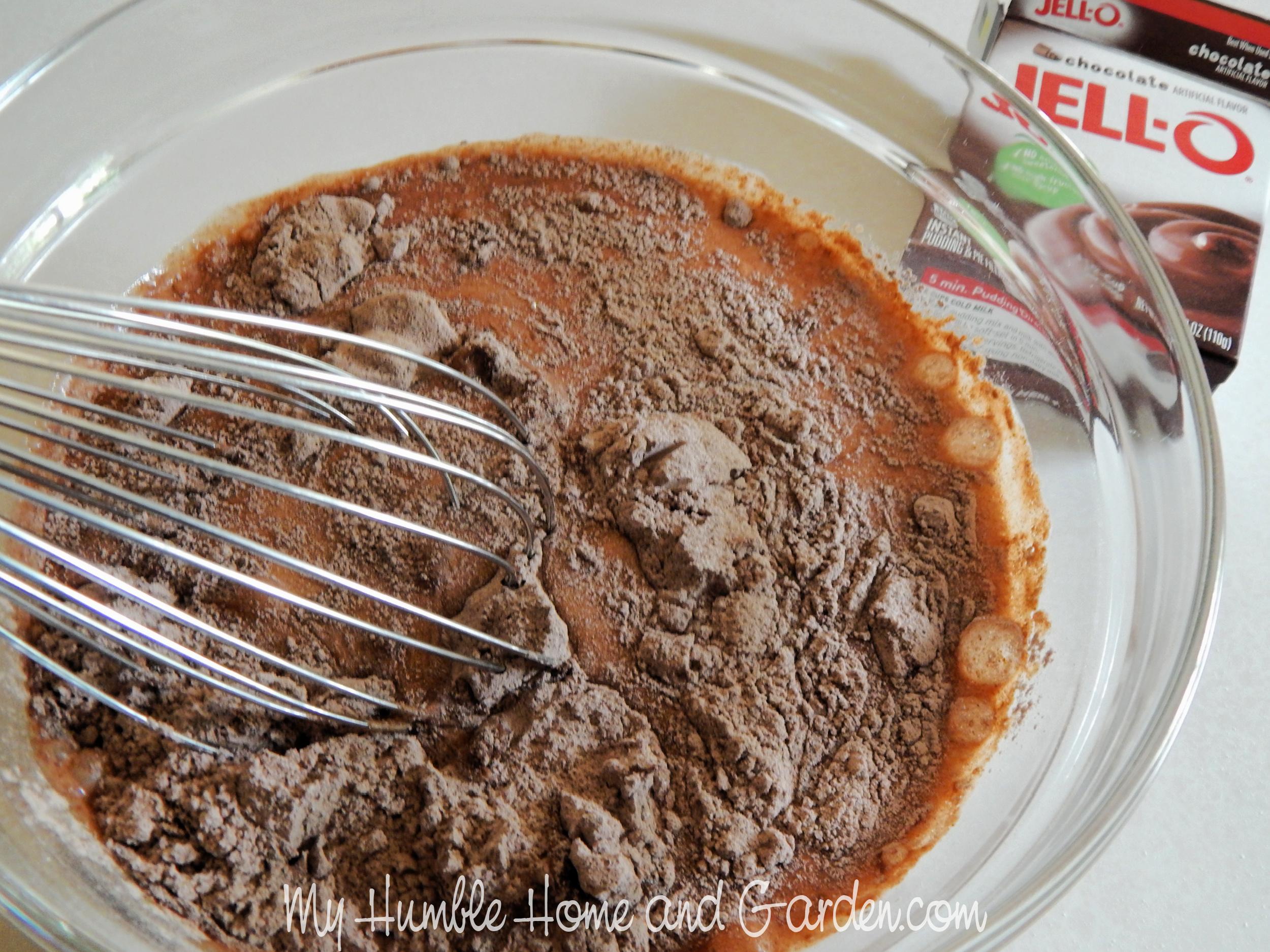 Add the JELL-O pudding mix to the milk. Who Won’t Love Delicious Chocolate Peanut Butter Mini Parfaits? #miniparfaits #peanutbutter