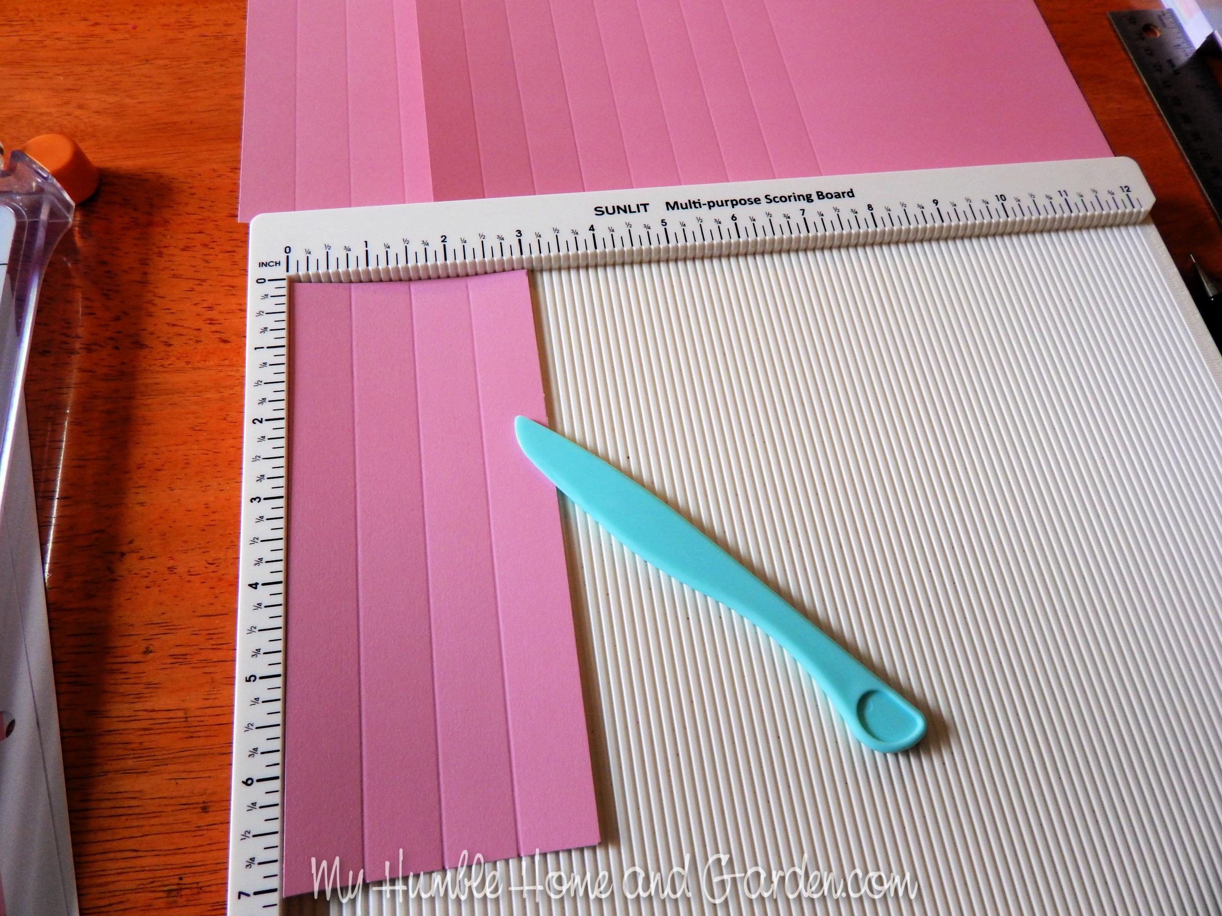 Place the 3 x 7-inch cardstock on the scoring board with the 3-inch side at the top. Score at 3/4, 1-1/2, and 2-1/4 inches.