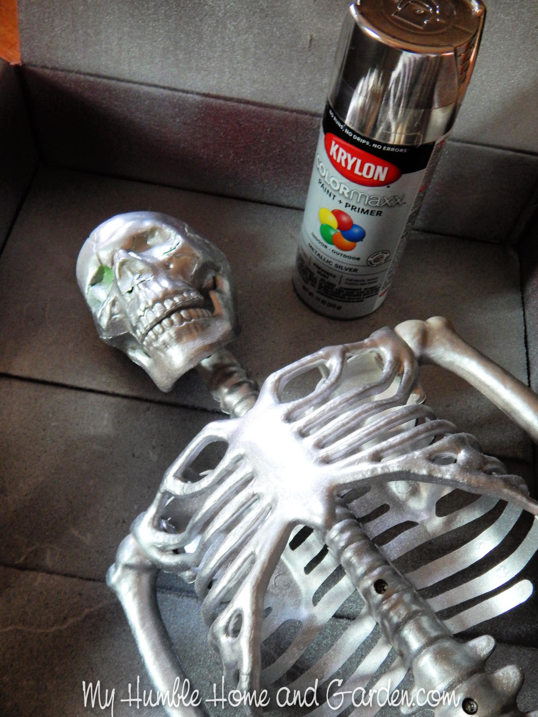 Use Metallic Silver paint and primer to paint the skeleton. Posted on 2023-10-052023-10-05Full size 1875 × 2500 Use Metallic Silver paint to spray paint the skeleton. How to Create a Chic Spooky Skeleton Mantel Display