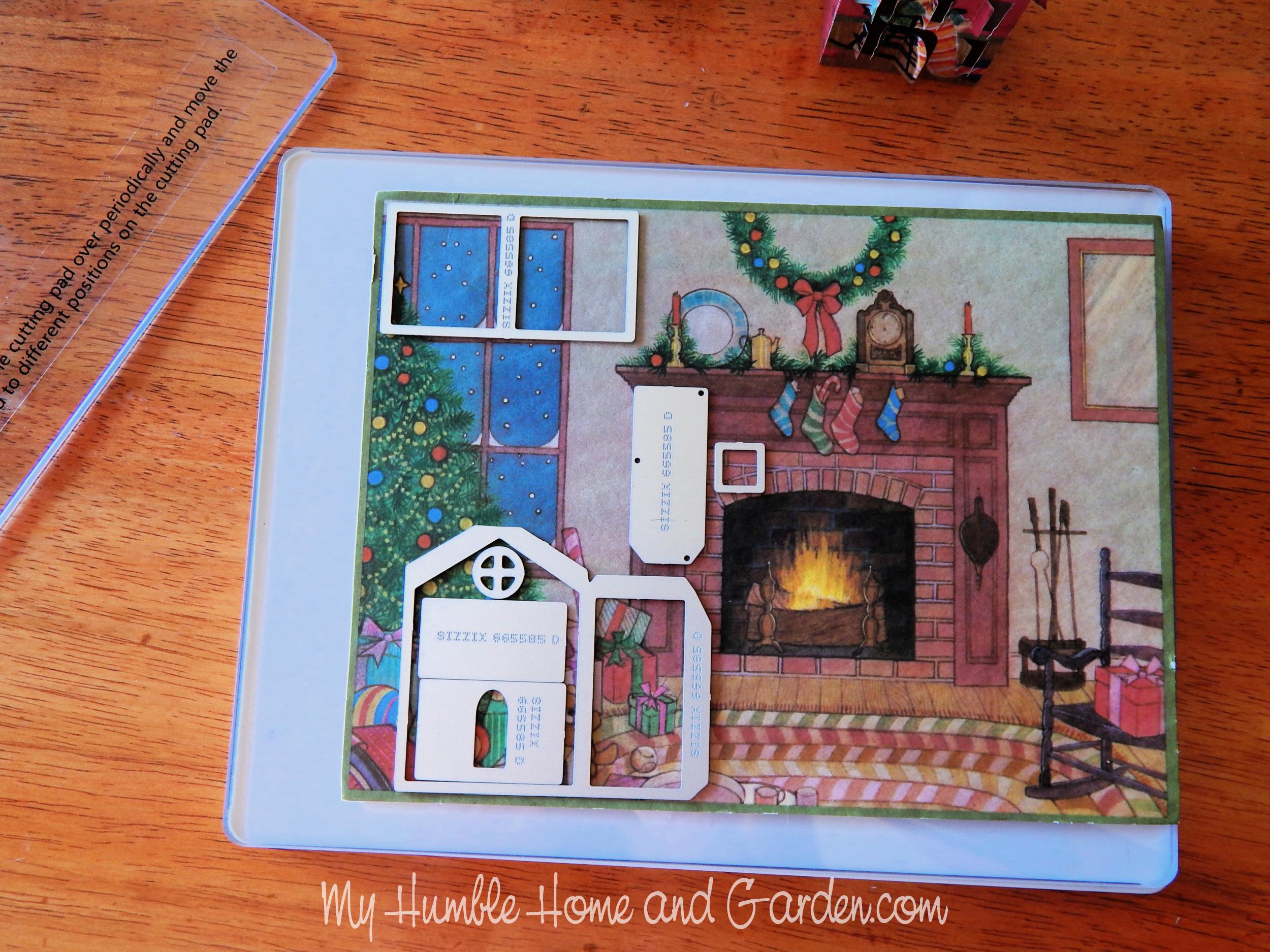 How to Make Putz Houses from Christmas Cards -Strategically place the dies on a Christmas card. #dies #Christmascards #recycle