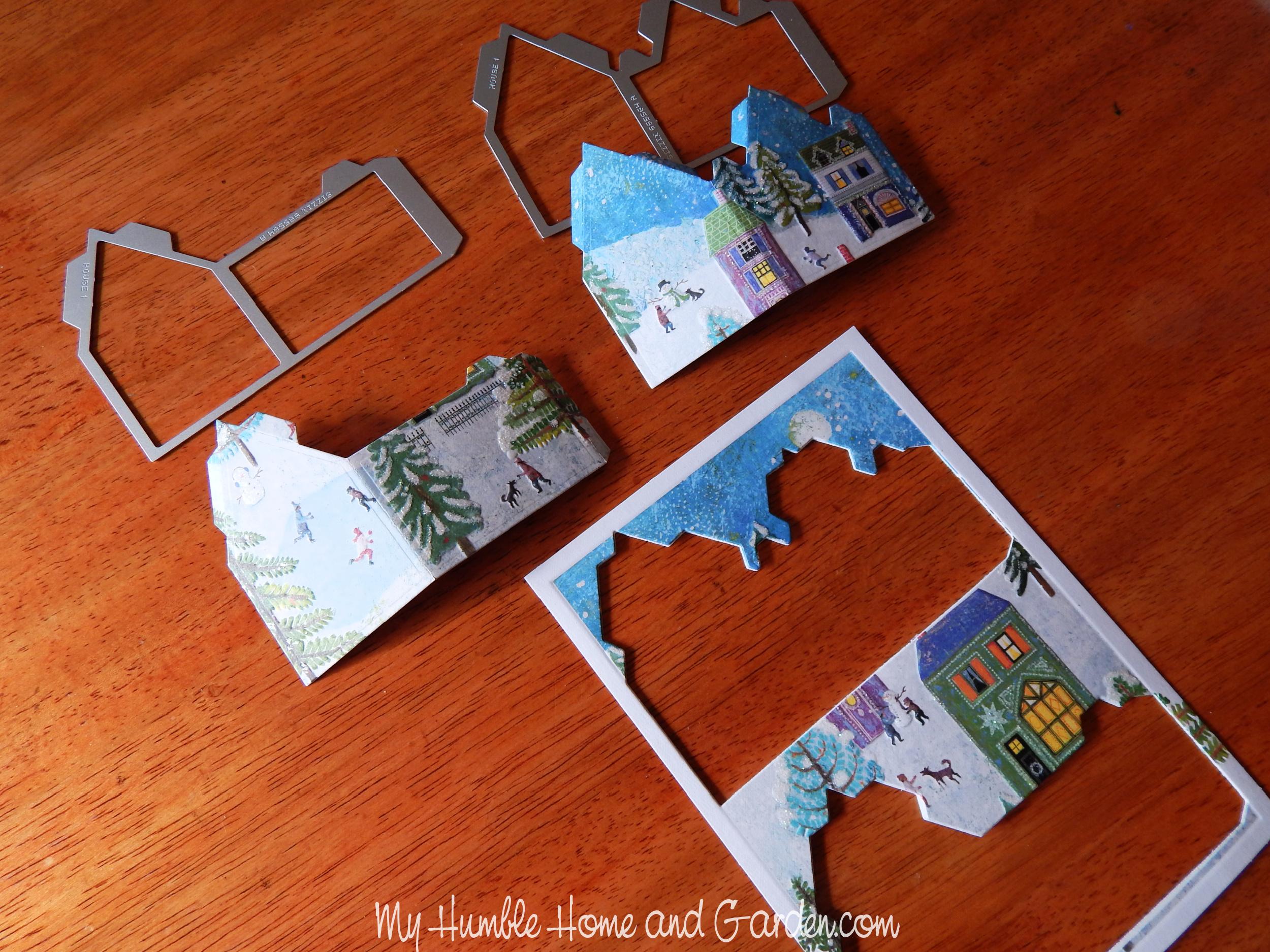 How to Make Bigger Putz Houses from Christmas Cards Cut out the front and the back of the house. #putzhouses #putzhousesfromChristmascards