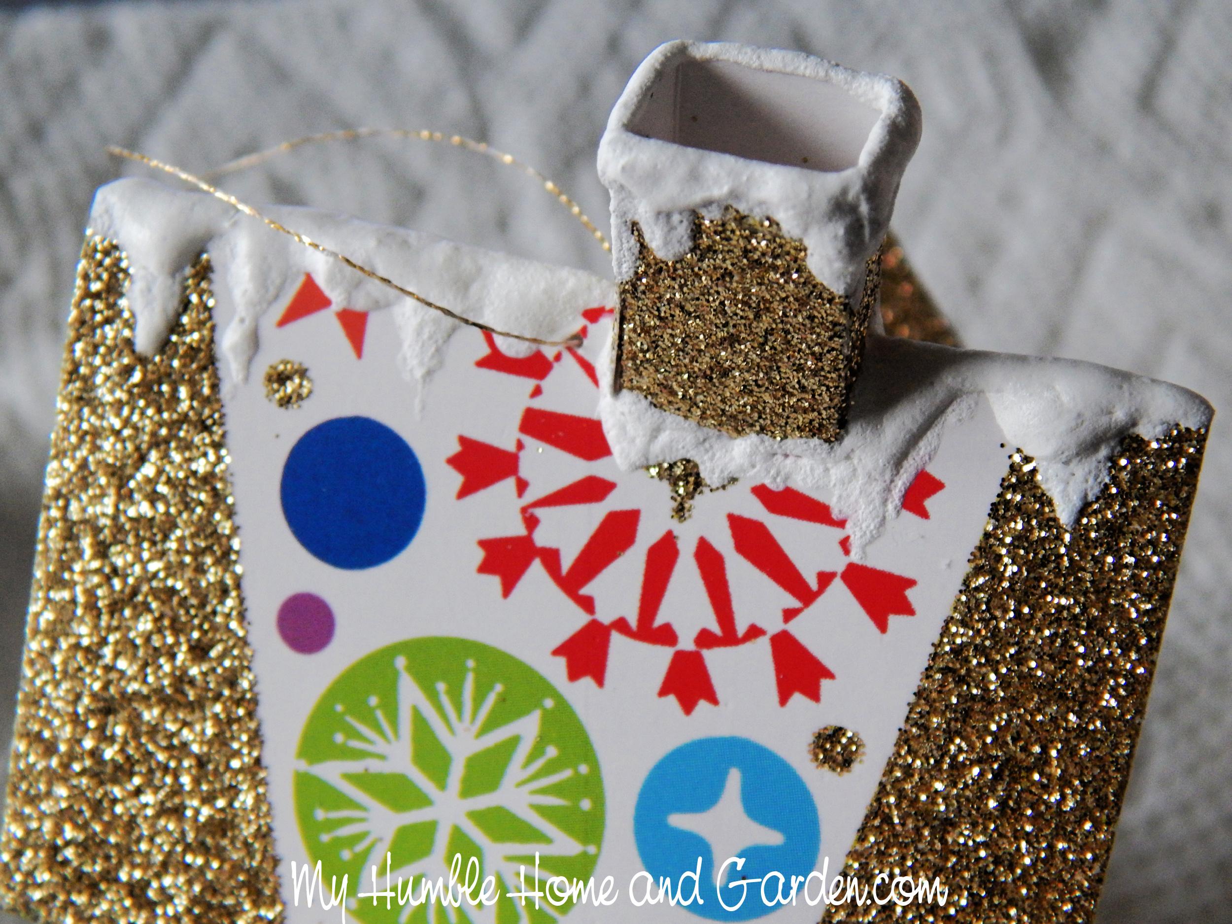 How to Make Bigger Putz Houses from Christmas Cards – Pull down snow tips with a tiny brush. #putzhouses #putzhousesfromChristmascards