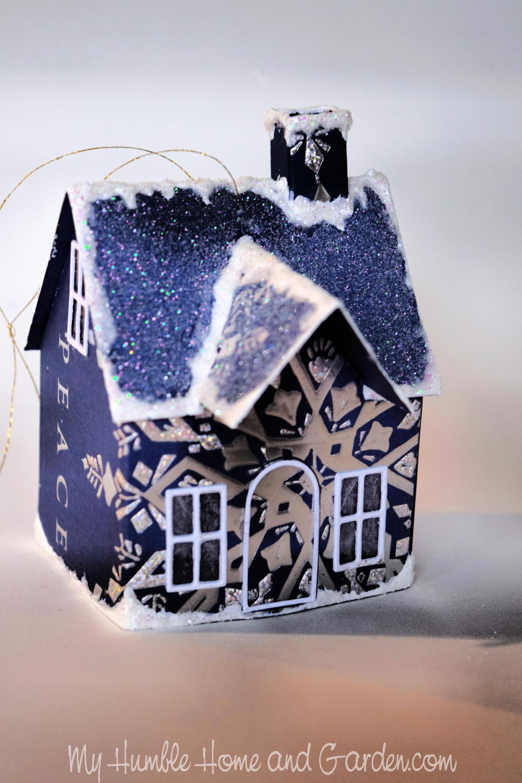 How to Make Bigger Putz Houses from Christmas Cards – Putz house from Blue Christmas Card #putzhouses #putzhousesfromChristmascards