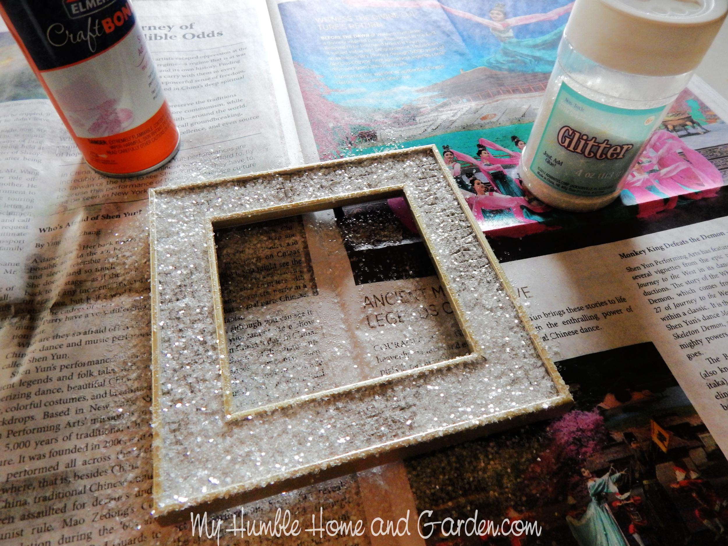 Recycle Christmas Cards – Easy Ornament Frame Decor You’ll Love – Sprinkle Fine Glitter on Top. – Sprinkle Fine Glitter on Top.