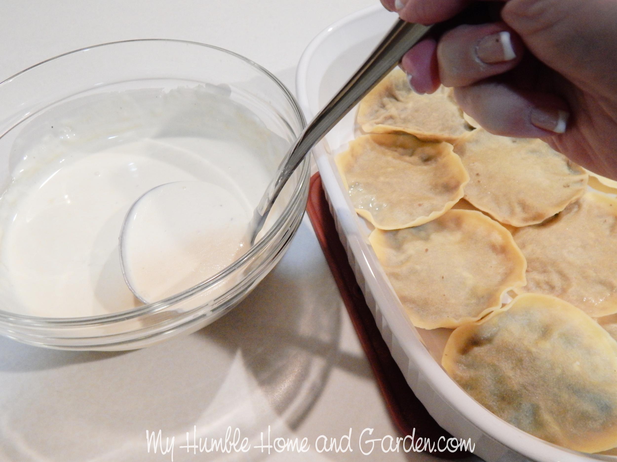 Top with cream sauce. Posted on 2024-02-082024-02-08Full size 2500 × 1875 Top with cream sauce. How to Make Maggiano’s Mushroom Ravioli al Forno – Top with cream sauce. #raviolialforno #mushroomravioli