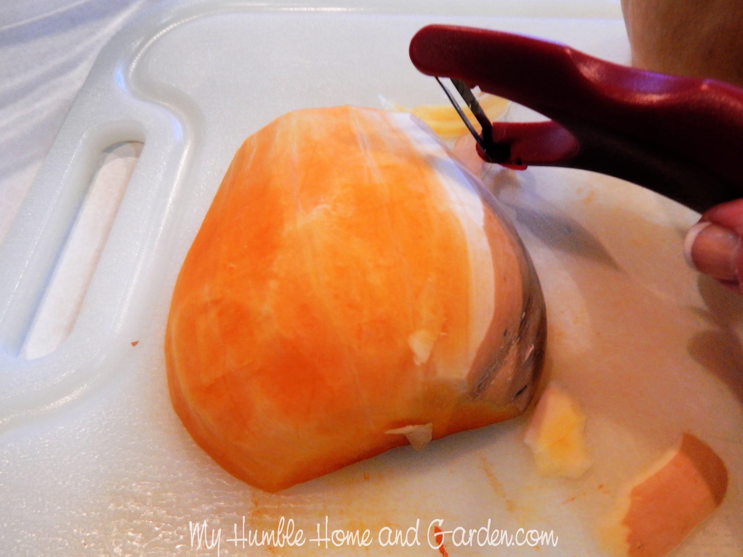 Peel the squash with a vegetable peeler. You can use a sharp knife, but I found the vegetable peeler makes it easier.