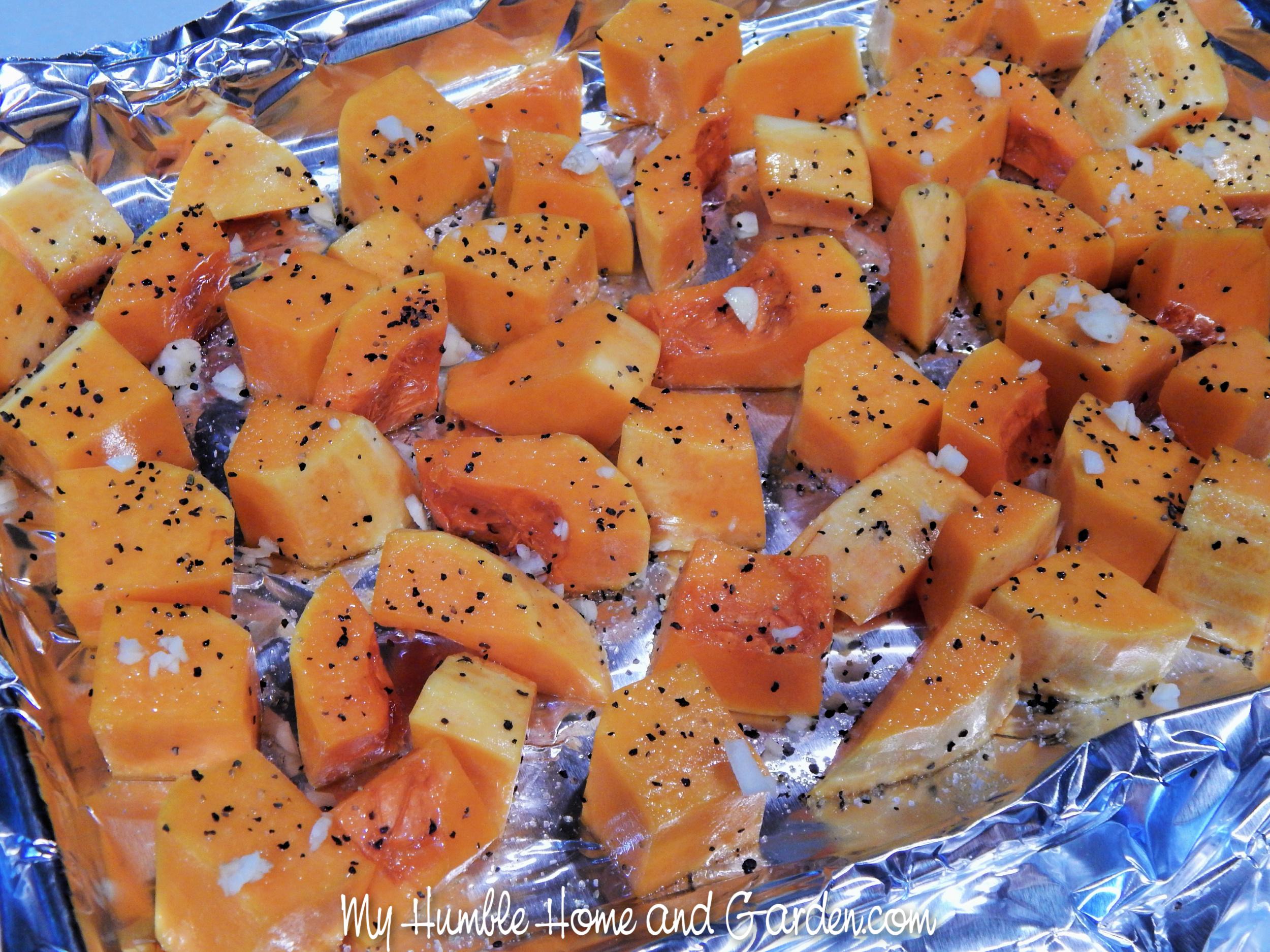 Garlic Shrimp and Butternut Squash Party Appetizers They’ll Love – Transfer the squash to a roasting pan. #appetizers #butternutsquash #shrimp