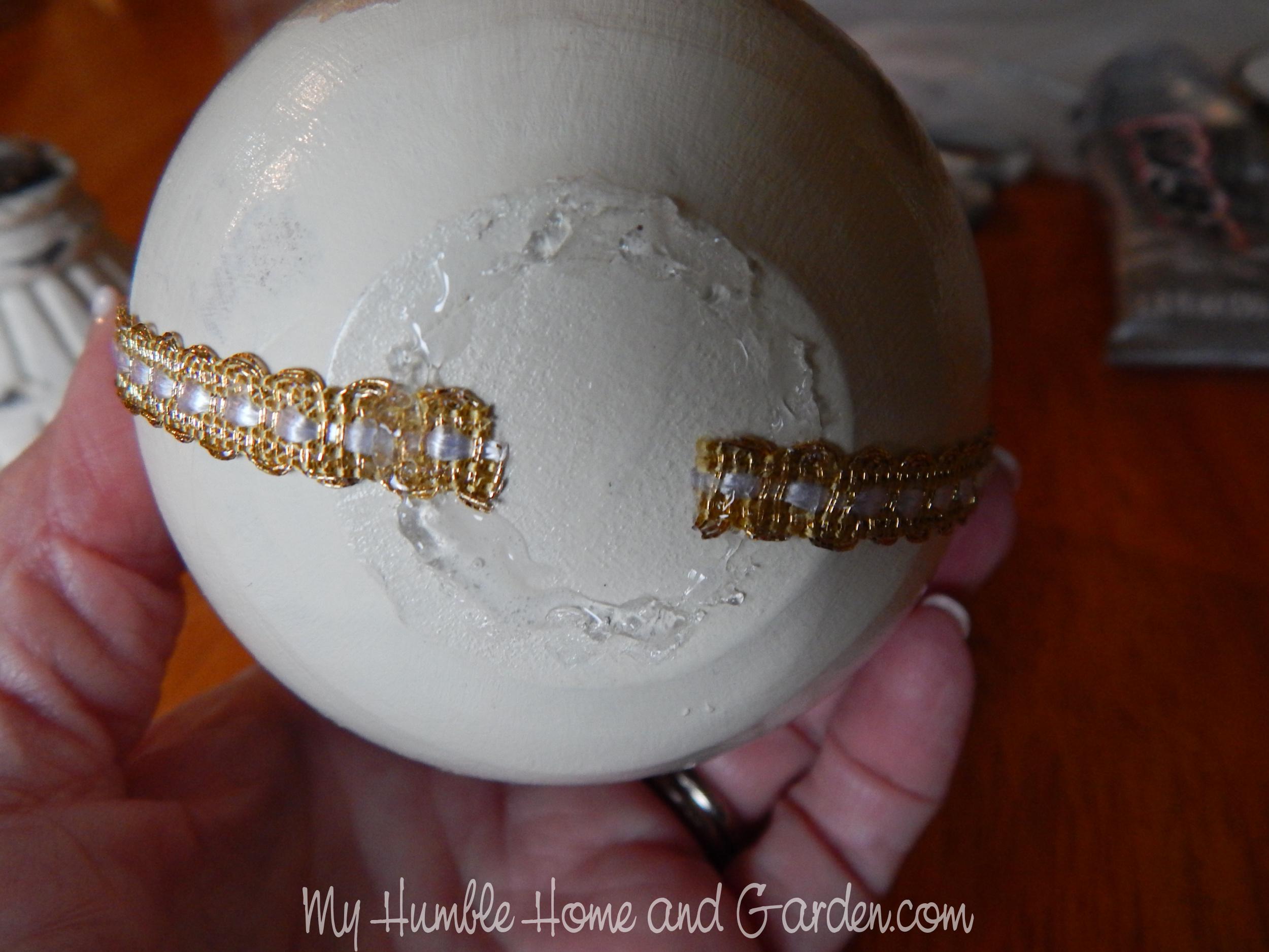 How to Make a Vintage Easter Egg Look-Alike Apply E6000 glue to the bottom of the egg. #vintageeasteregg #easteregg #easterdecor